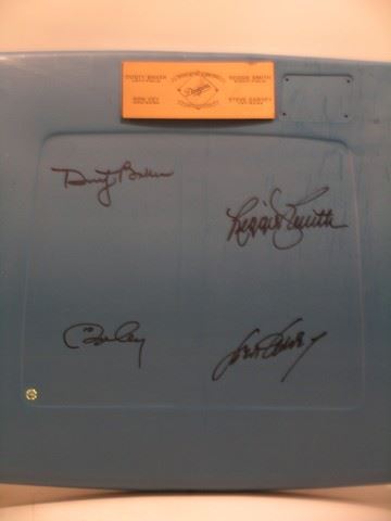 Dodgers Record Setting 30 Homeruns Limited Edition plastic chairback with a plaque on the front and signed by Dusty Baker, Reggie Smith, Ron Cey, and Steve Garvey. Includes the no seat number. Purchased directly from Dodger Stadium and there are no others available like this with the signatures and seat number available for sale. (approx. 19 1/2" x 17)