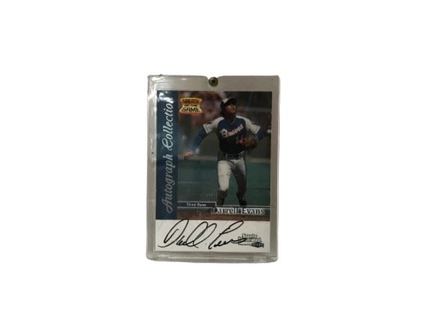 Fleer/SkyBox Sports Illustrated Autograph Collection of Darrel Evans Autographed baseball trading card. Hand signed by Darrel Evans with black marker in 1999 during his time with the Atlanta Braves. Embossed with the Fleer Mark of Authenticity.