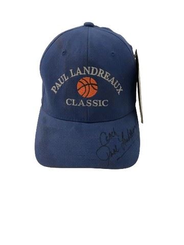 Paul Landreaux autographed navy blue Paul Landreaux Classic embroidered baseball cap. Signed by Coach Paul Landreaux. Original tags attached.