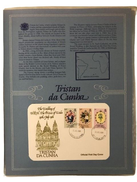 The Royal Wedding England’s Prince Charles to Lady Diana Spencer first day cover collection book. An international collection of official first day covers issued by British commonwealth nations and dependencies. From the Postal commemorative society.
