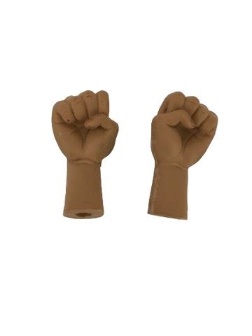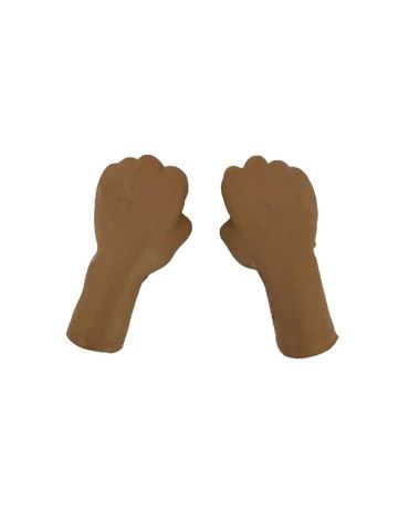 Hands are clenched in a fist, extending down to the mid forearm with holes for attaching to other body parts.