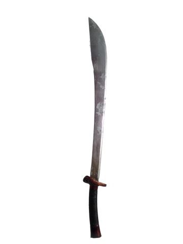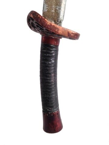Yu (Michelle Yeoh) screen used, hero, Dao, silver foam and aluminum inside to keep it's shape, silver is peeling of in some places, the handle is slightly warped, it has a copper color with black leather handle.(16x3)