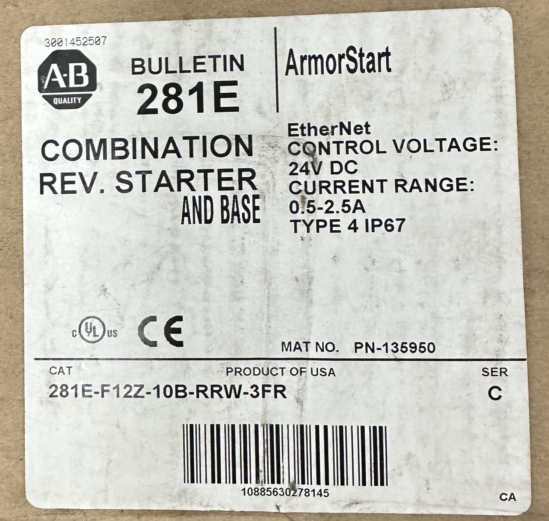 Allen Bradley #281E-F12Z-10B-RRW-3FR Combination Starter & Base