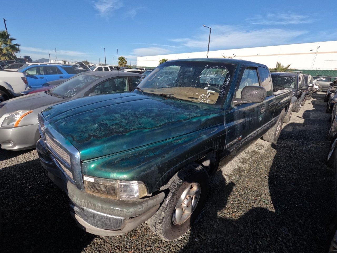 MAKE: DODGE || MODEL: RAM 1500 || YEAR: 1999 || TITLE: O/S T-DONATION || VIN: 3B7HC12Y2XG203125 || MILES: 208492 || ENGINE: 8 CYL / 5.2 L || COLOR: GREEN || KEYS: YES
