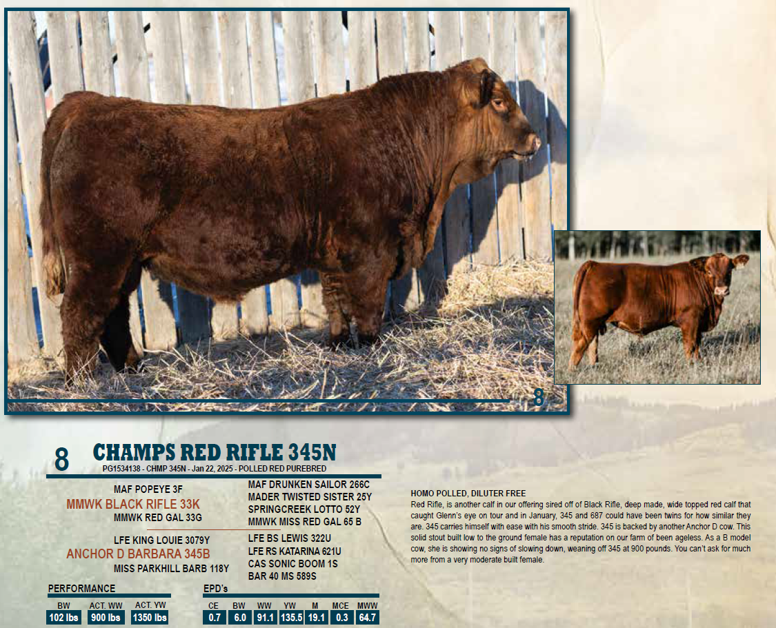 CHAMPS RED RIFLE 345N - RED HOMO POLLED, DILUTER FREE