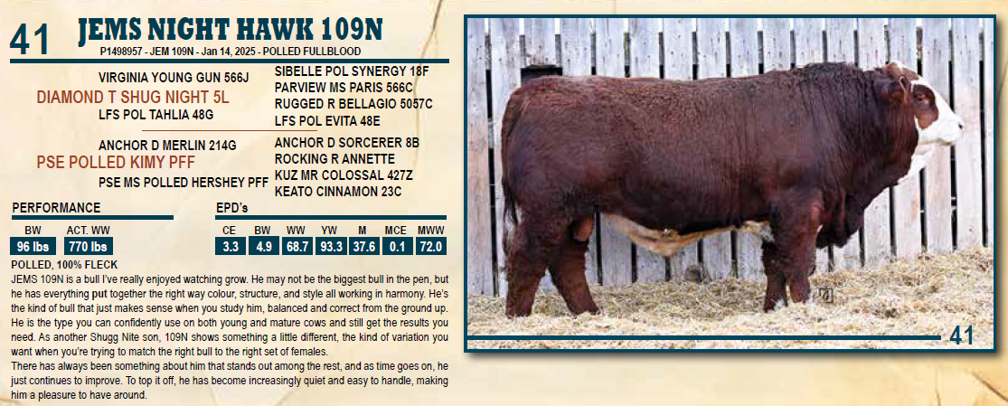 JEMS NIGHT HAWK 109N - POLLED, 100% FLECK