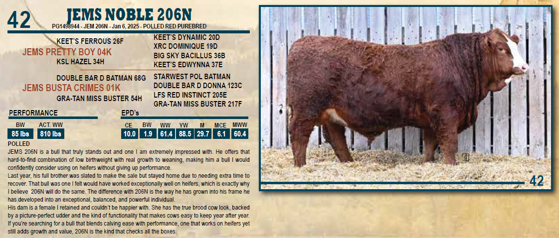JEMS NOBLE 206N - POLLED RED PUREBRED