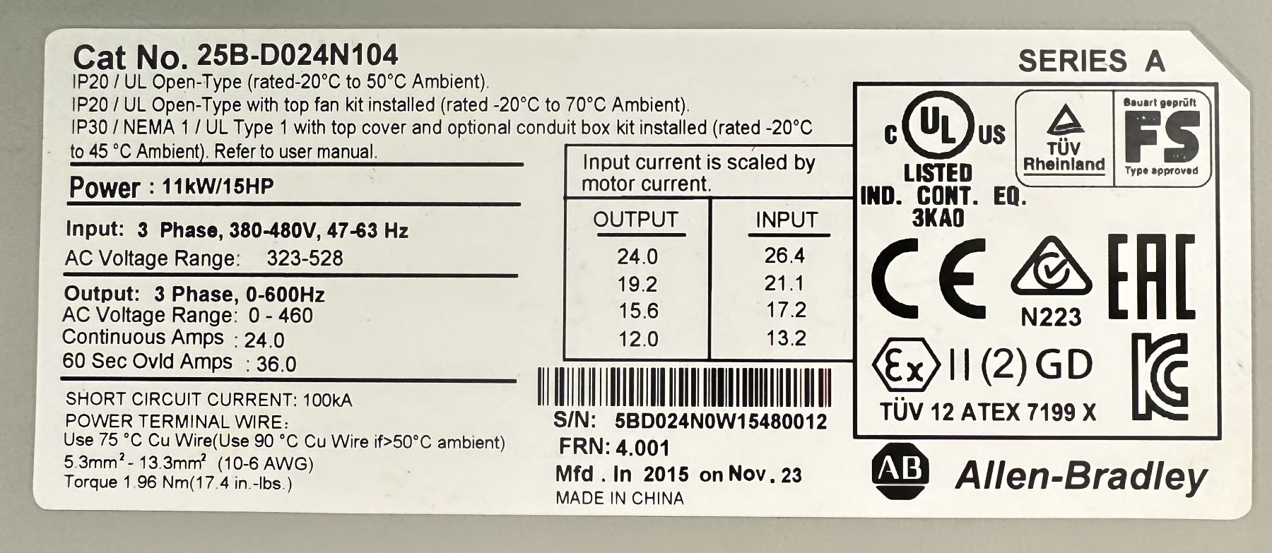 Lot 409 Allen Bradley #25B-D024N104 Power Flex 525