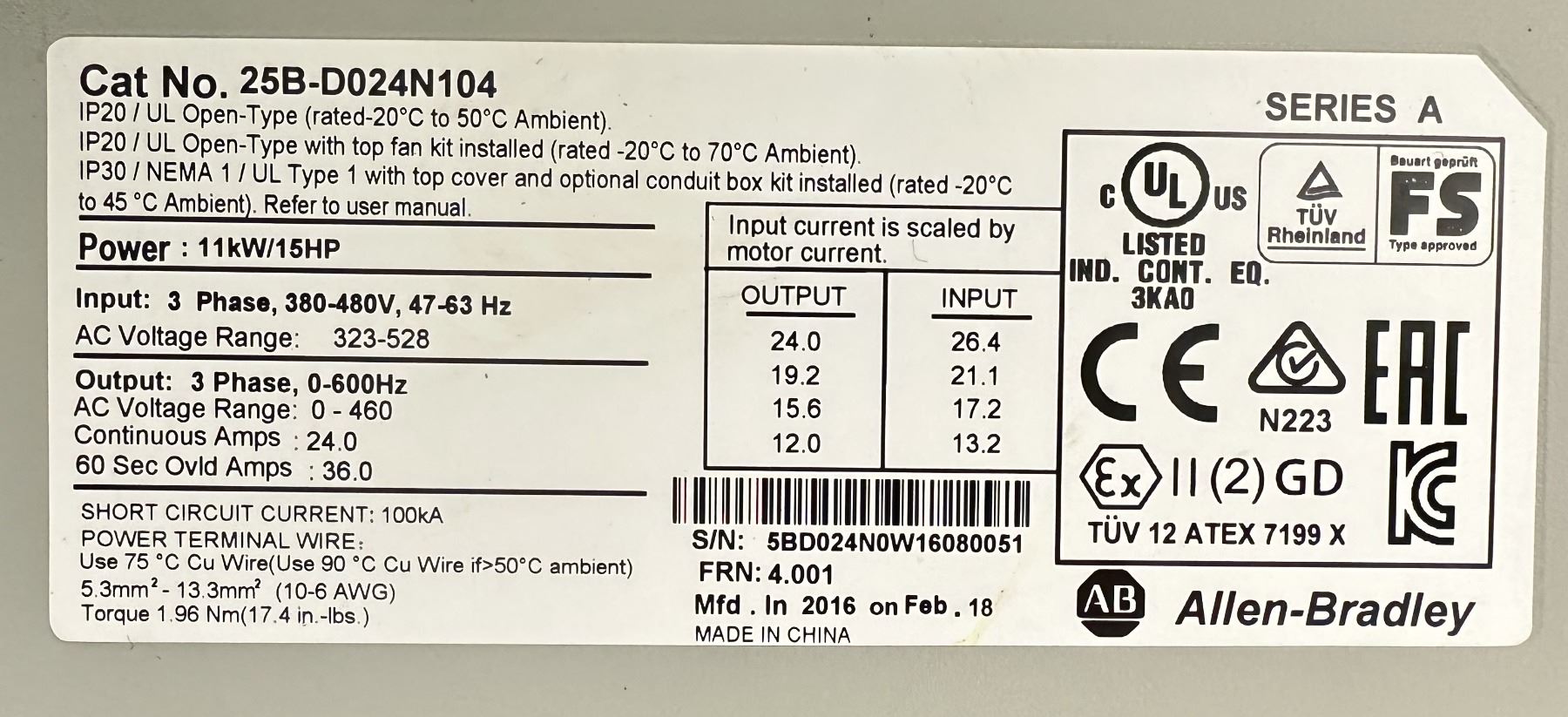 Lot 410 Allen Bradley #25B-D024N104 Power Flex 525