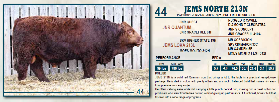 JEMS NORTH 213N - POLLED RED PUREBRED