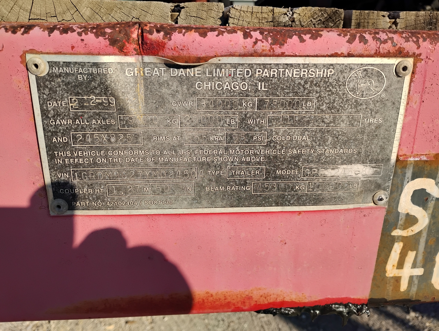 Lot 284 2000 GREAT DANE GPES248-80 Flatbed Trailer