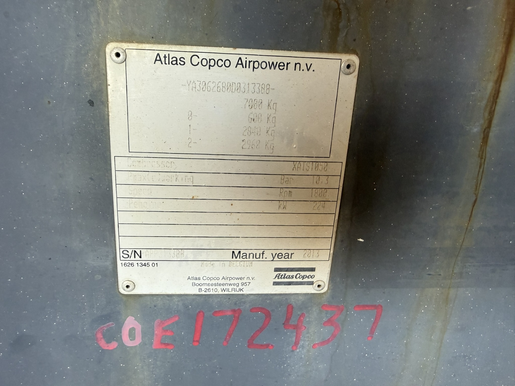Lot 313 2013 ATLAS COPCO XATS 1050 CDT Air Compressor