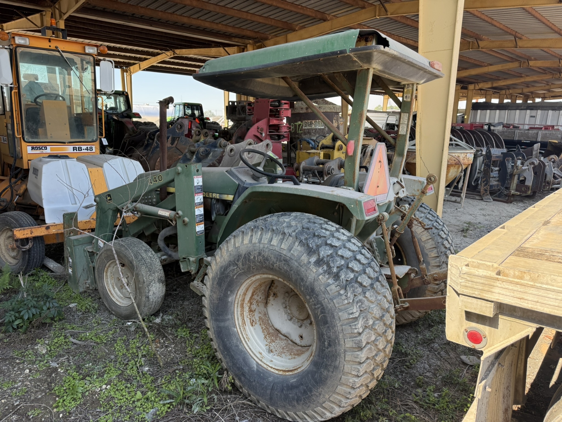 John Deere 440 front loader attach, forks, canopy, PTO, 3 PTH