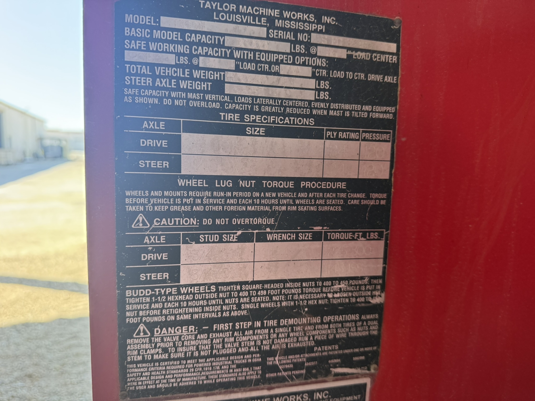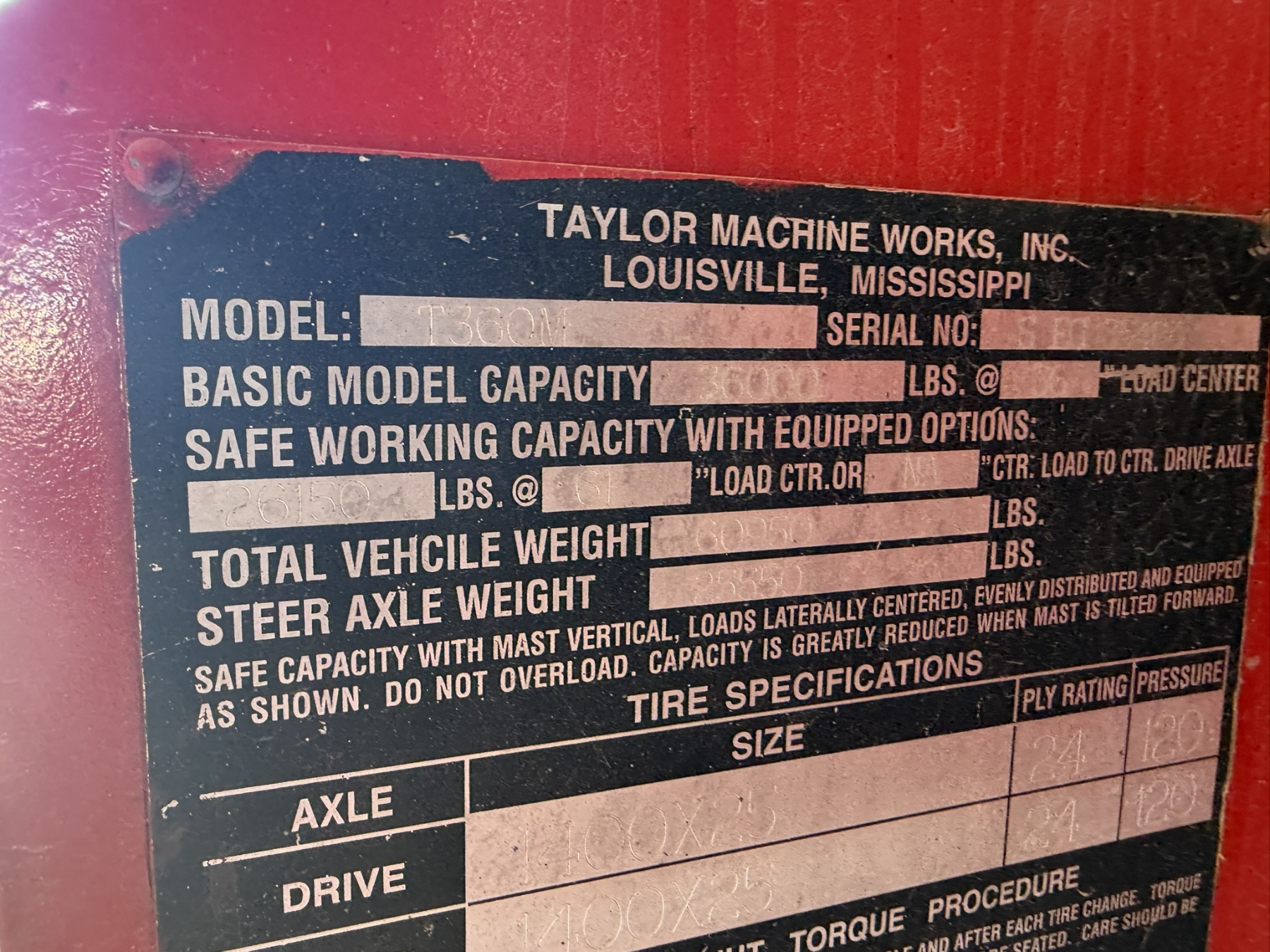 36,000 lb. capacity, dual stage mast, hyd side shift, cab, A/C