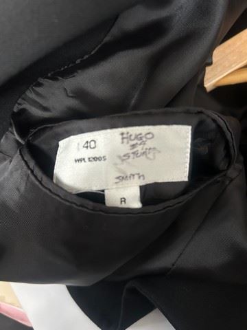 The Matrix Reloaded (2003) and The Matrix Revolutions (2003) - Agent Smith's (Hugo Weaving) black 3- button single breasted blazer with WB and Hero Agent written in white marker on the inside collar. Hugo #4 stunts written on the inside pocket tag. Size 40R. This authentic, production-worn black three-button single-breasted blazer was featured during the high-octane sequences, specifically designed to signify Smith's transition into a rogue program after the events of the first film.