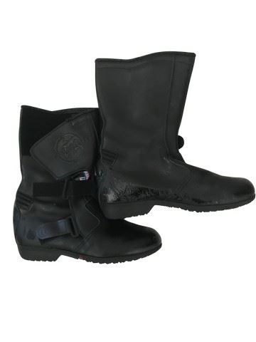 Extreme Adventures of Super Dave - Super Dave Junior (Michael Angarano) black jumpsuit racing jumpsuit with red and black motorcycle gloves and black motorcycle boots.