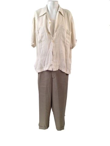 Humpty (Jim Belushi) screen worn, hero, cream mesh knit, short sleeve dress shirt, off white tank top (production soiled), and greenish brown checkered 50's style dress pants. Wardrobe tag included.