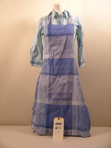 Butter (2011) - Laura (Jennifer Garner) screen worn, hero, light blue with stripes 'Faconnable' shirt, (size 4) and light blue and purple floral print apron. Includes wardrobe tag!