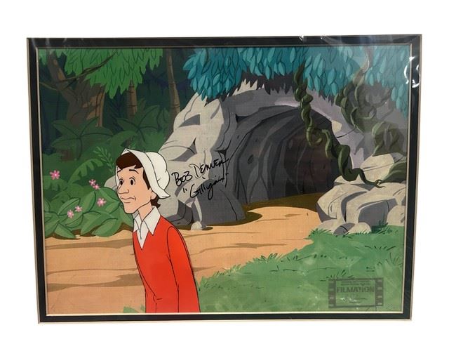 "Gilligan's Island"hand painted, original, Animation Cel, professionally matted. Signed by Bob Denver (Gilligan) (Filmation Studios / 12" x 9") (18"x15" overall).