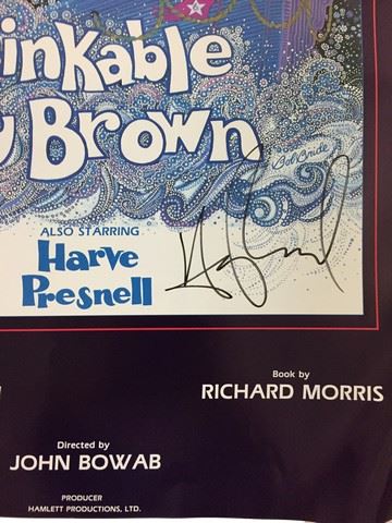 The Unsinkable Molly Brown (Metro-Goldwyn-Mayer, 1964) Half Sheet. Starring Debbie Reynolds and Harve Presnell. Autographed by Harve Presnell. There are creases and edge wear damage. Very Fine. (18" x 24"). Paired with a piece of the original, wooden dance floor from Debbie Reynolds Dance Studio, with a custom engraved "Debbie Reynolds Dance Studio" plate (3.5"x 6.25"). This amazing memorabilia comes direct from the Debbie Reynold's archive collection. The Debbie Reynold's archive collection was formed by Debbie Reynolds and her son Todd Fisher who collected and preserved some of the best of Hollywood's costumes and props. Beginning their collection decades ago by purchasing collections from the MGM auction, 20th Century Props auctions, Christie's auctions, Planet Hollywood and numerous additional auctions.
