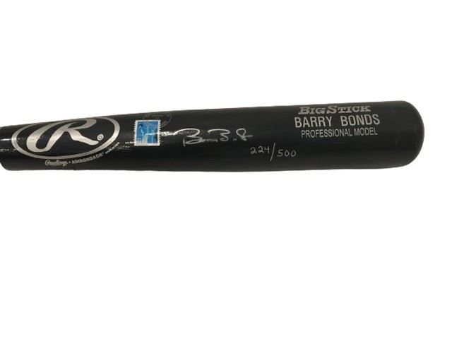 Big Stick Barry Bonds signed professional model, black colored Rawlings Adirondack bat numbered 224 out of 500.
