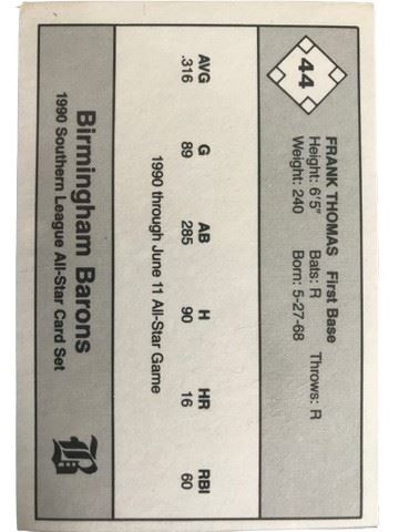 1990 Birmingham Barons Southern League All Star In Action #44 Frank Thomas trading card 1B.