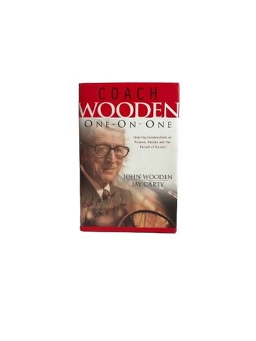 First edition hardcover copy of "Coach Wooden One- On-One" inspiring conversations on purpose, passion and the pursuit of success. The flyleaf is signed “To Barry, best wishes John Wooden.