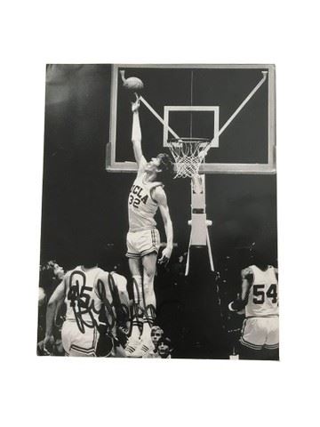 Vintage UCLA Bruins action photo featuring player #32 Bill Walton shooting a basket- signed at the bottom. 8”x10”.