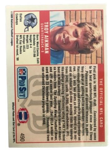 1989 Pro Set Troy Aikman NFL Dallas Cowboys rookie card #490