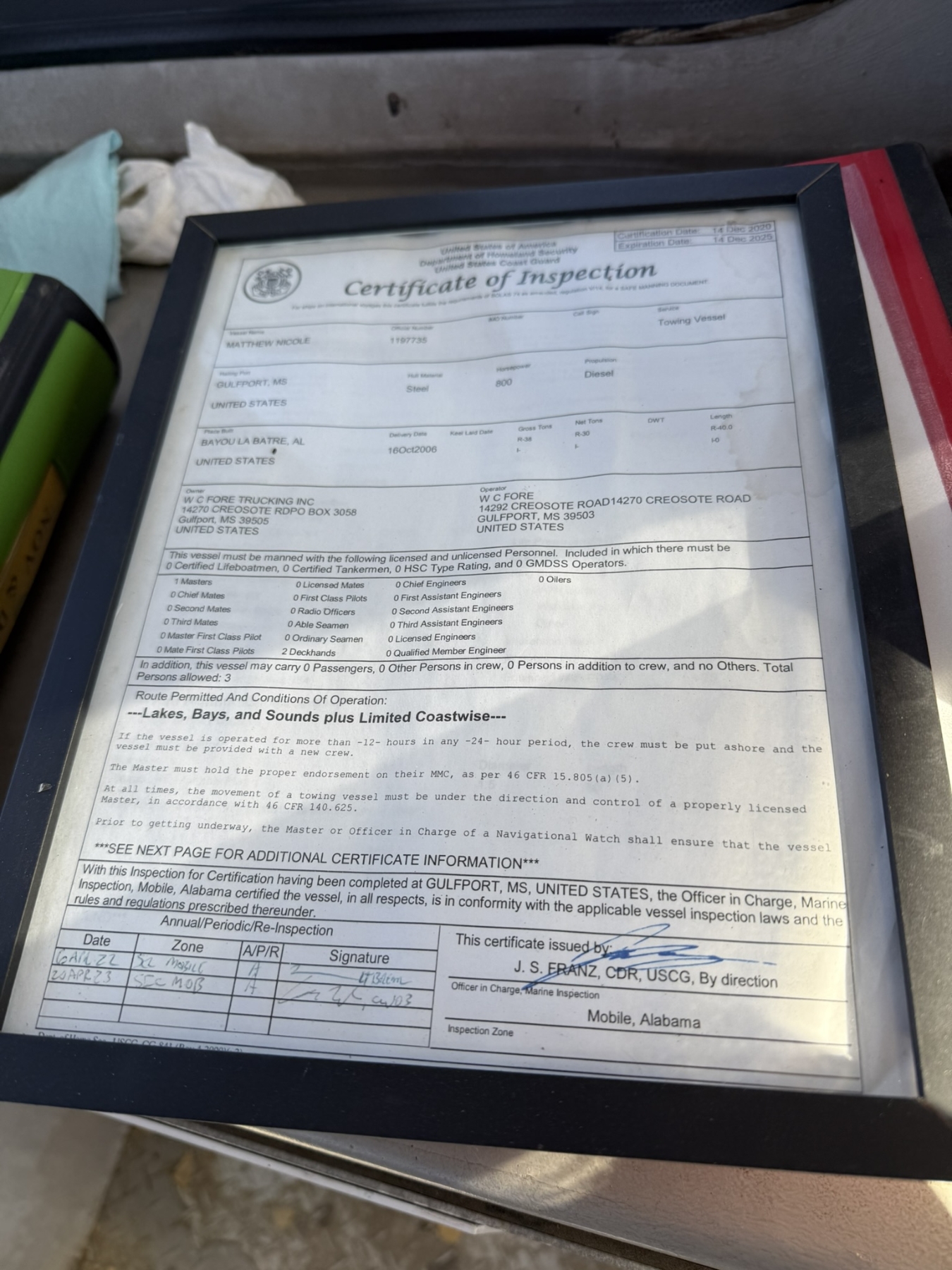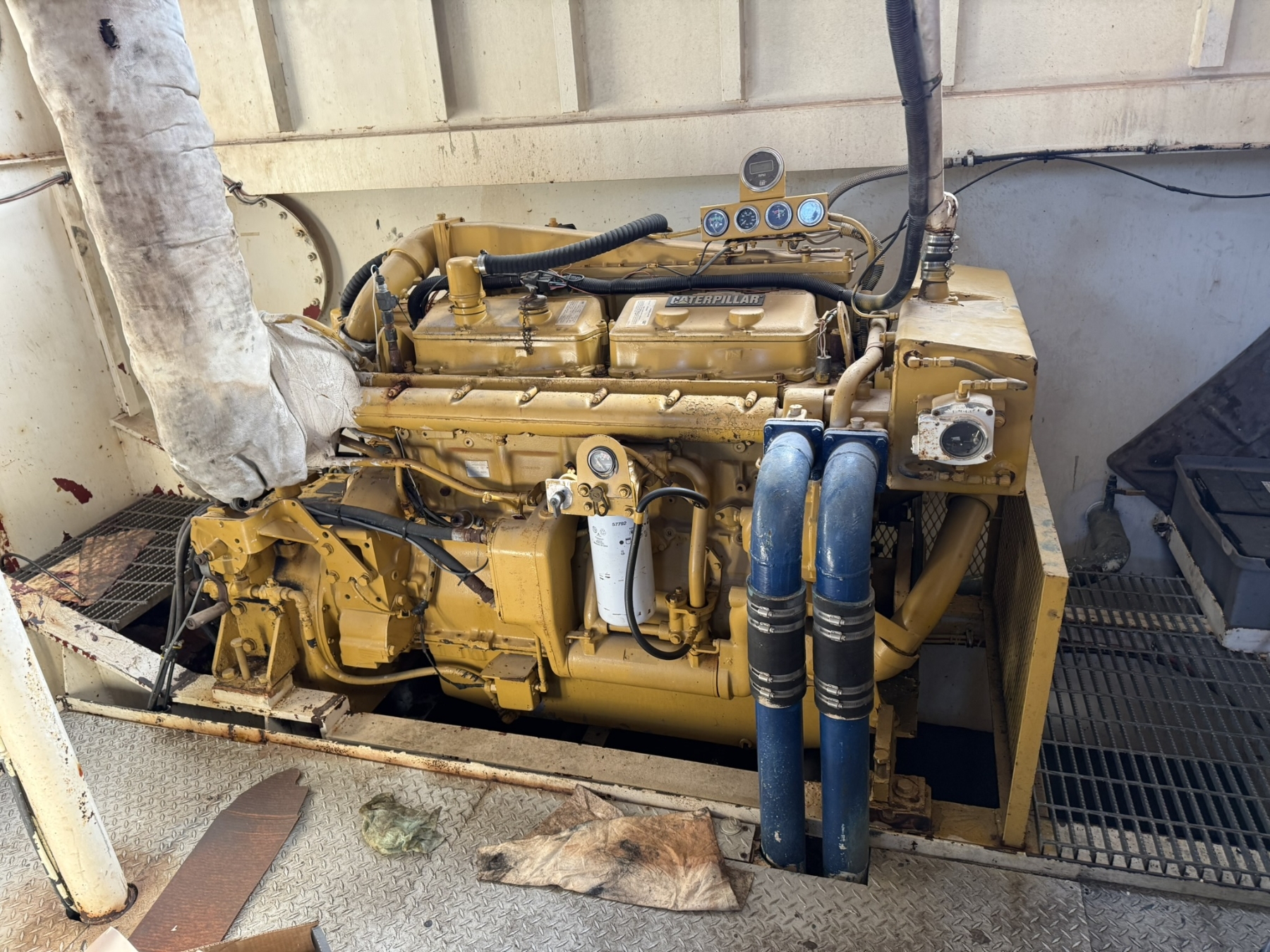 40’ length, 24’ breadth, 5.5’ depth, 30 NRT, Cat powered
