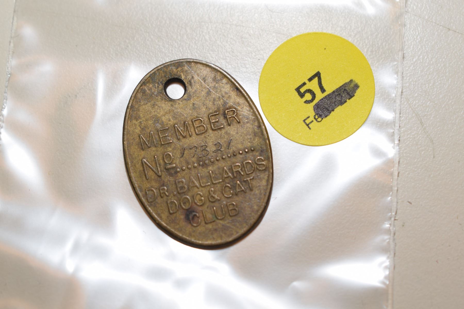 Lot 57 Vintage Dr Ballard Dog & Cat Club Membership Tag