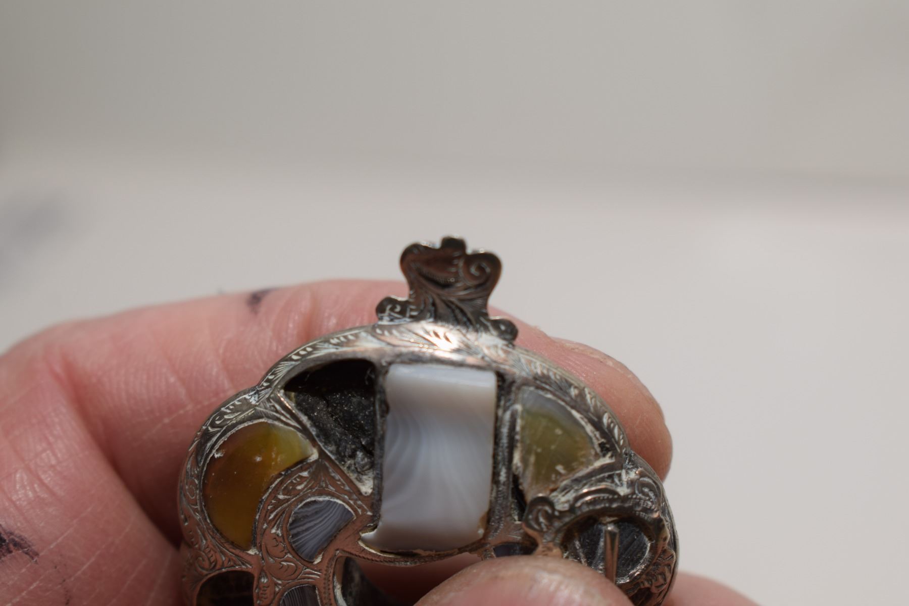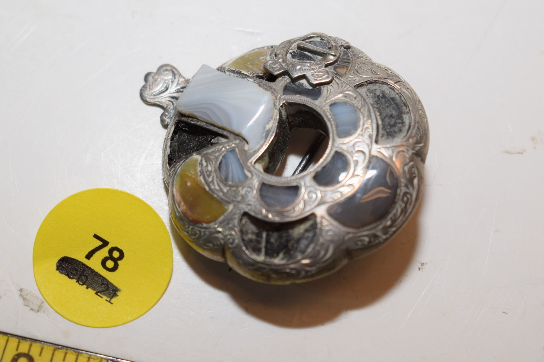 Lot 78 Antique Scottish Sterling Silver & Agate Brooch (No Markings)
