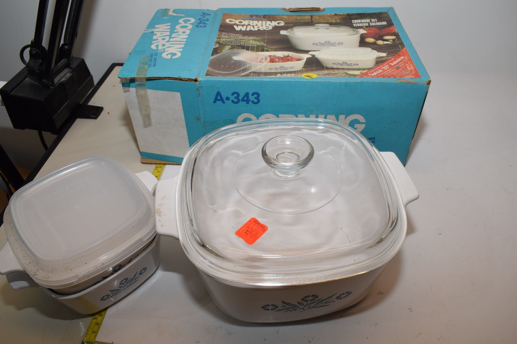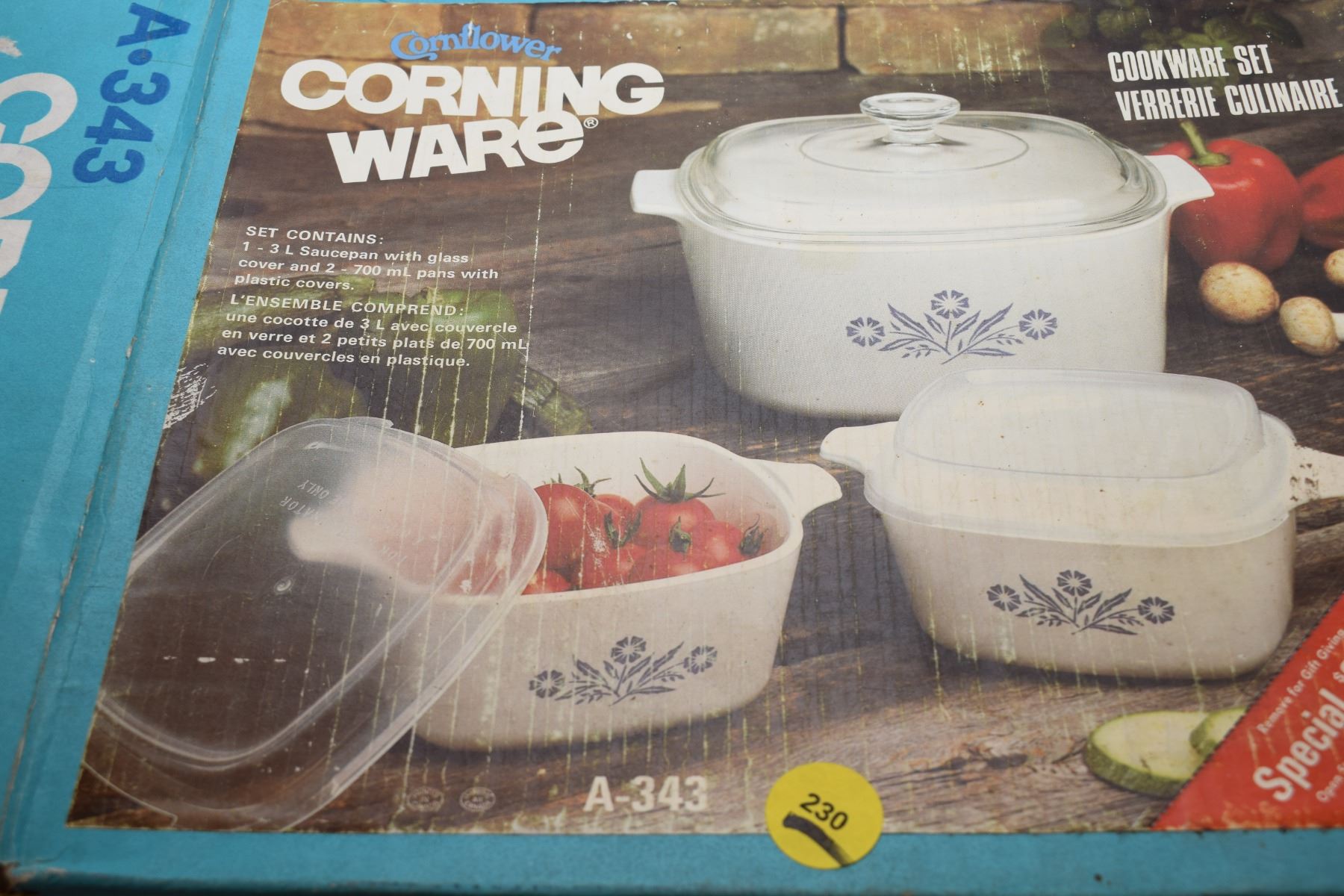 Lot 230 NOS Pyrex Corning Ware Blue Cornflower Cookware Set