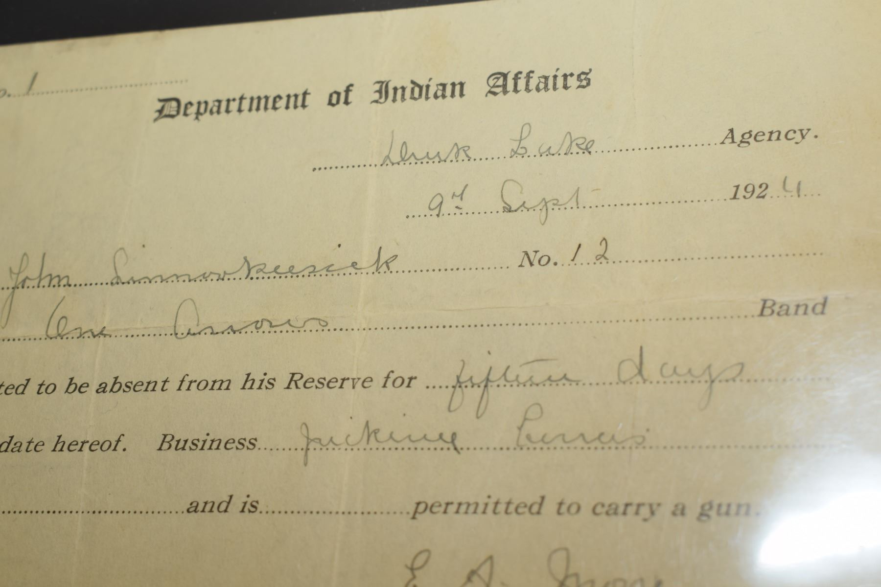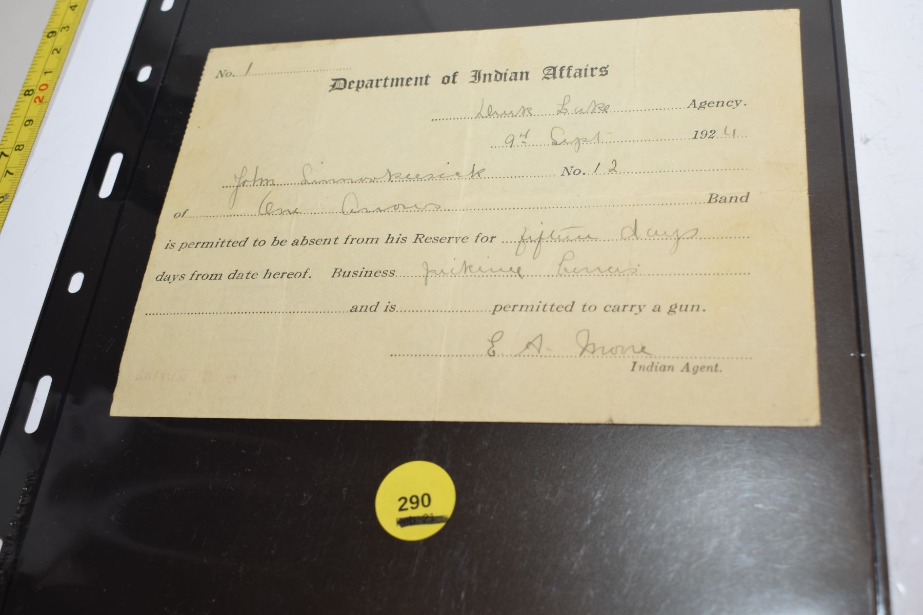 Lot 290 Indian Affairs Paper – One Arrows Band