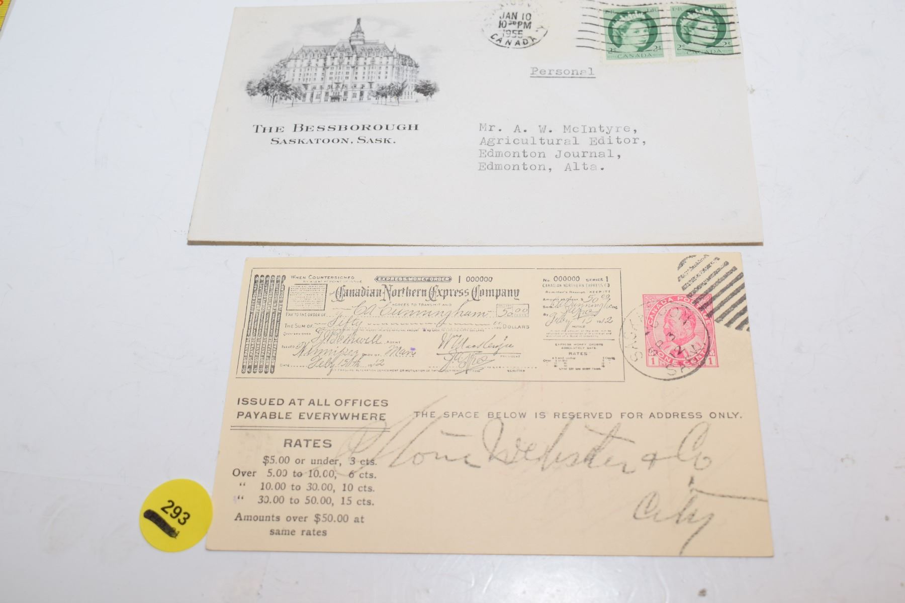 Lot 293 1955 Bessborough Envelope (Saskatoon, SK) & Interesting Paper