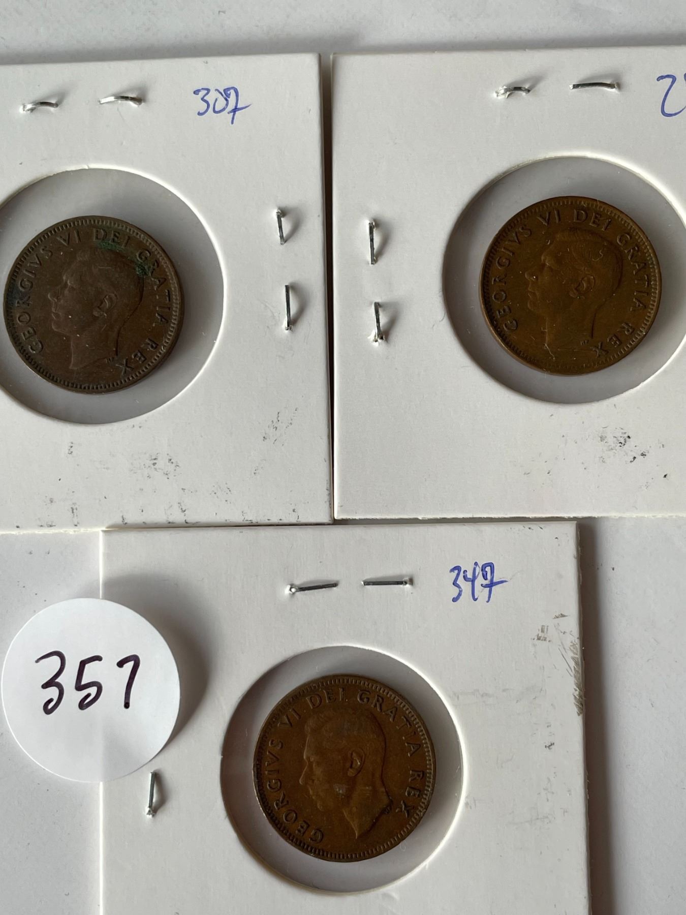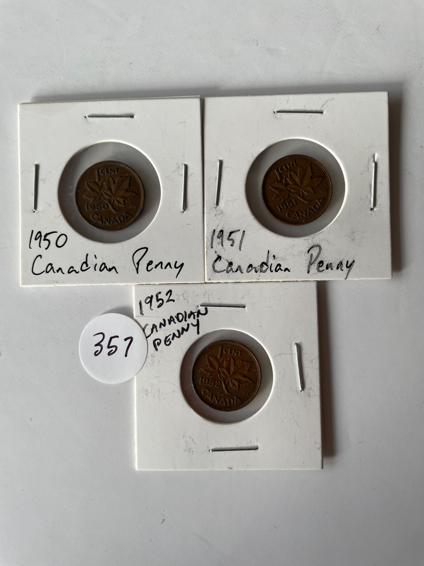 Lot 357 3 Canadian pennies 1950, 1951, 1952