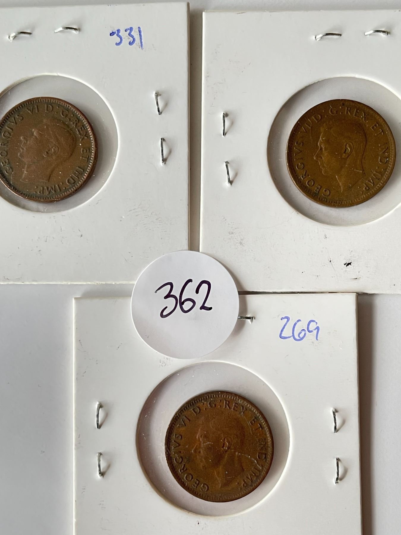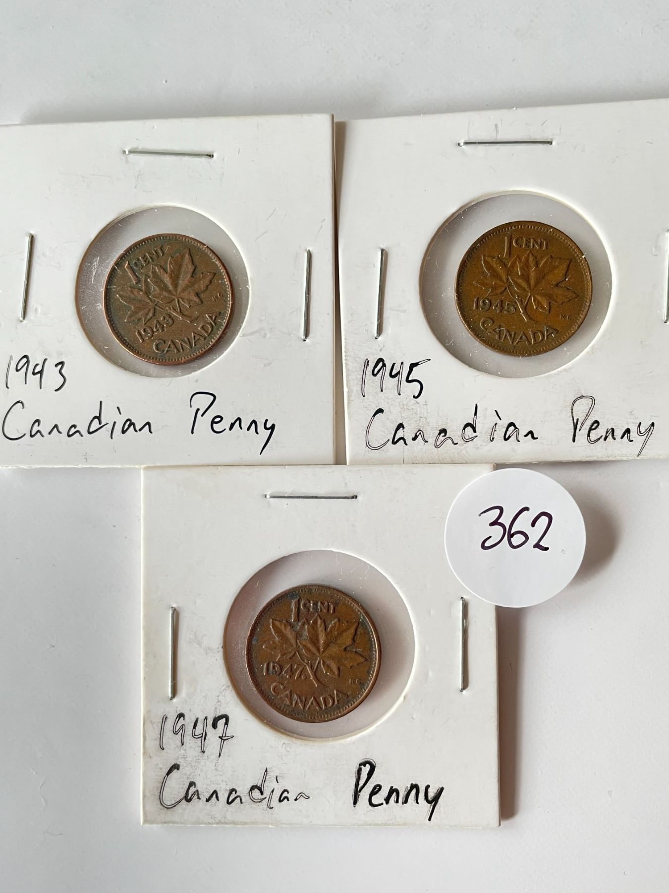 Lot 362 3 Canadian Pennies 1943, 1945, 1947