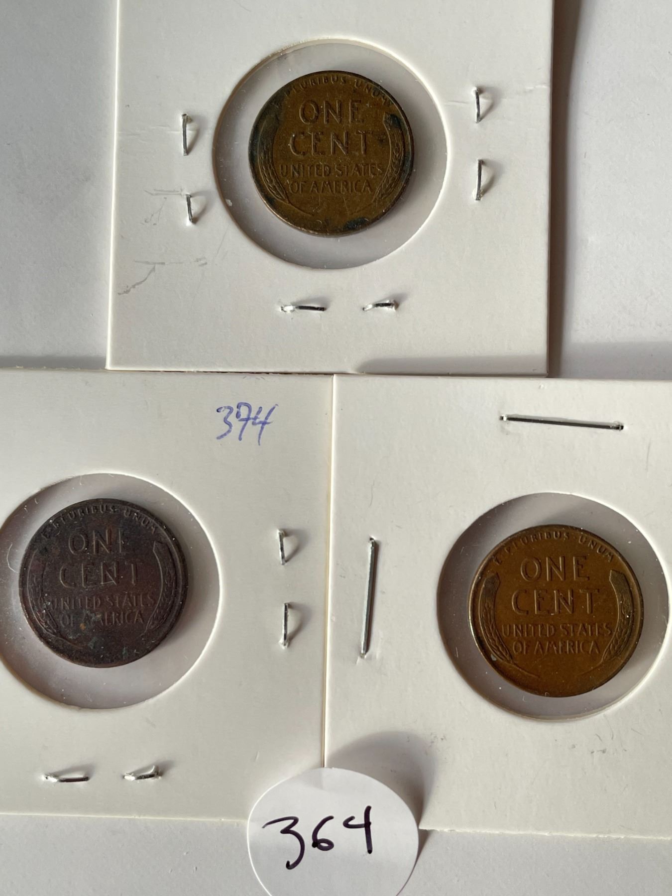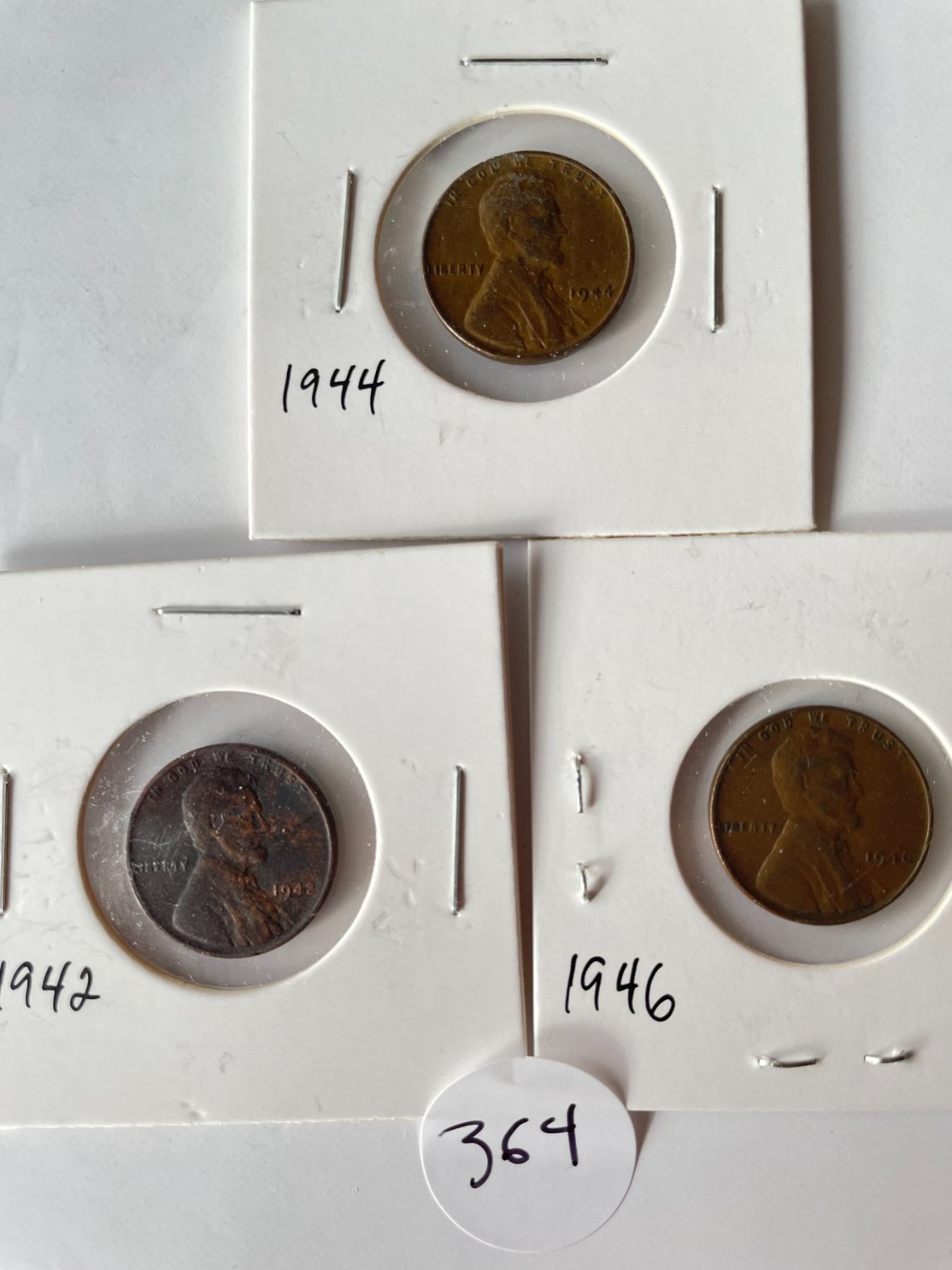 Lot 364 3 American US Pennies WW2 1942, 1944, 1946