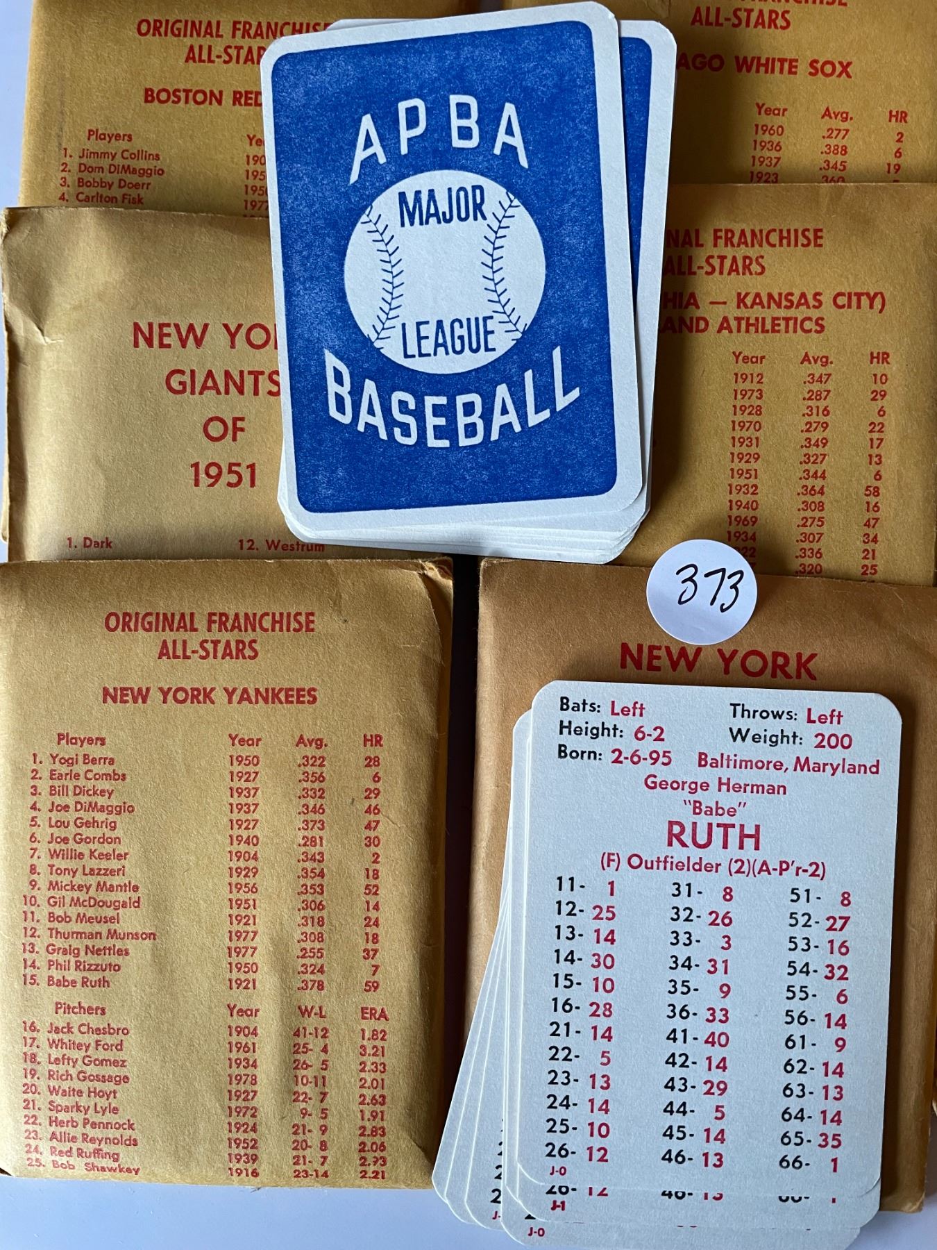 APBA All Stars Cards complete set of teams includes Babe Ruth card