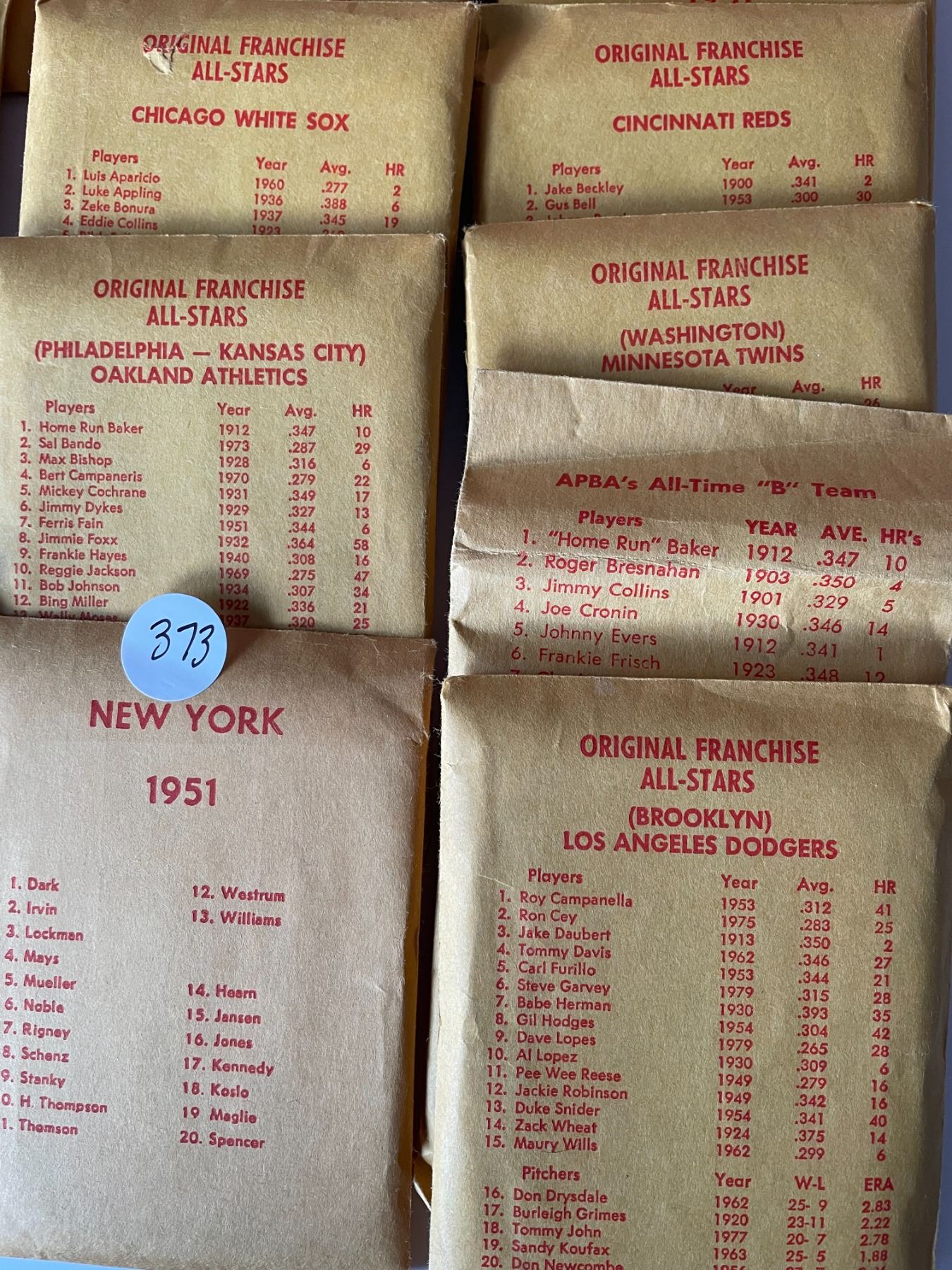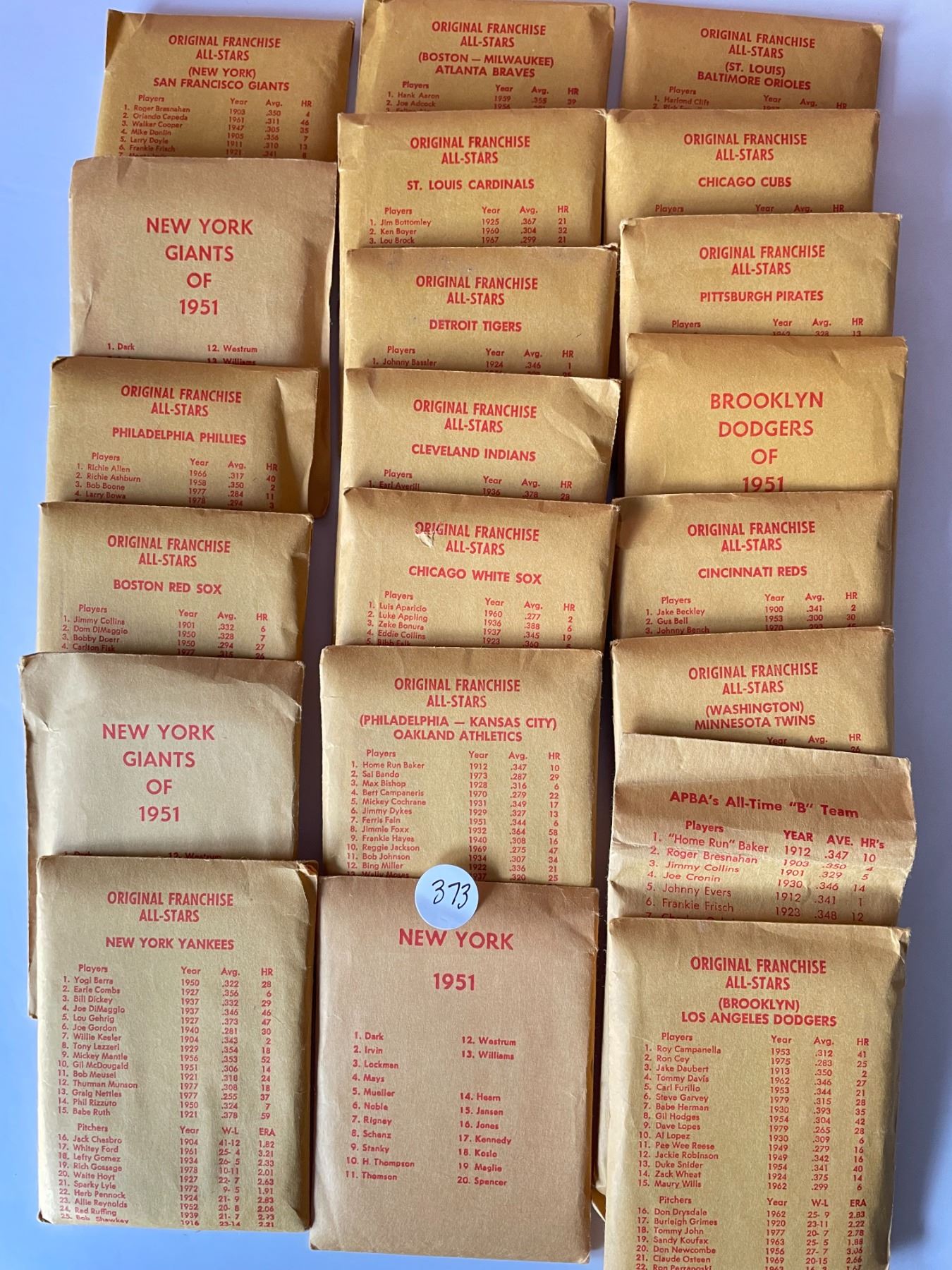 Lot 373 APBA All Stars Cards complete set of teams includes Babe Ruth card
