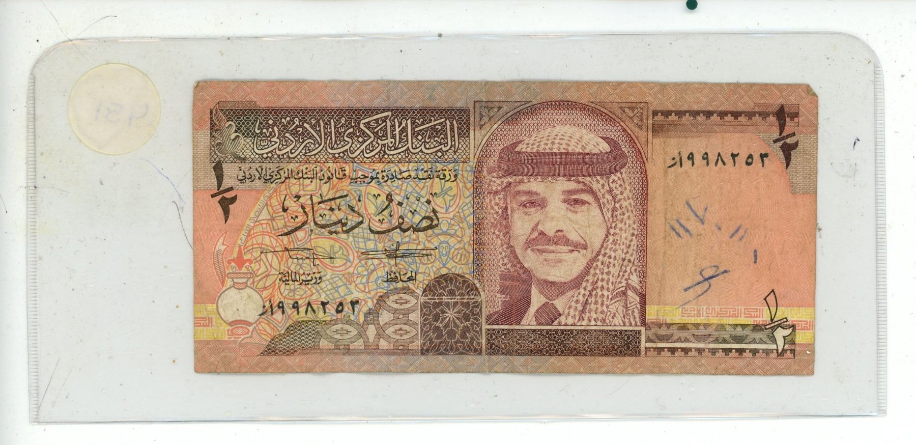 Jordan 1/2 Dinar banknote issued by the Central Bank of Jordan.