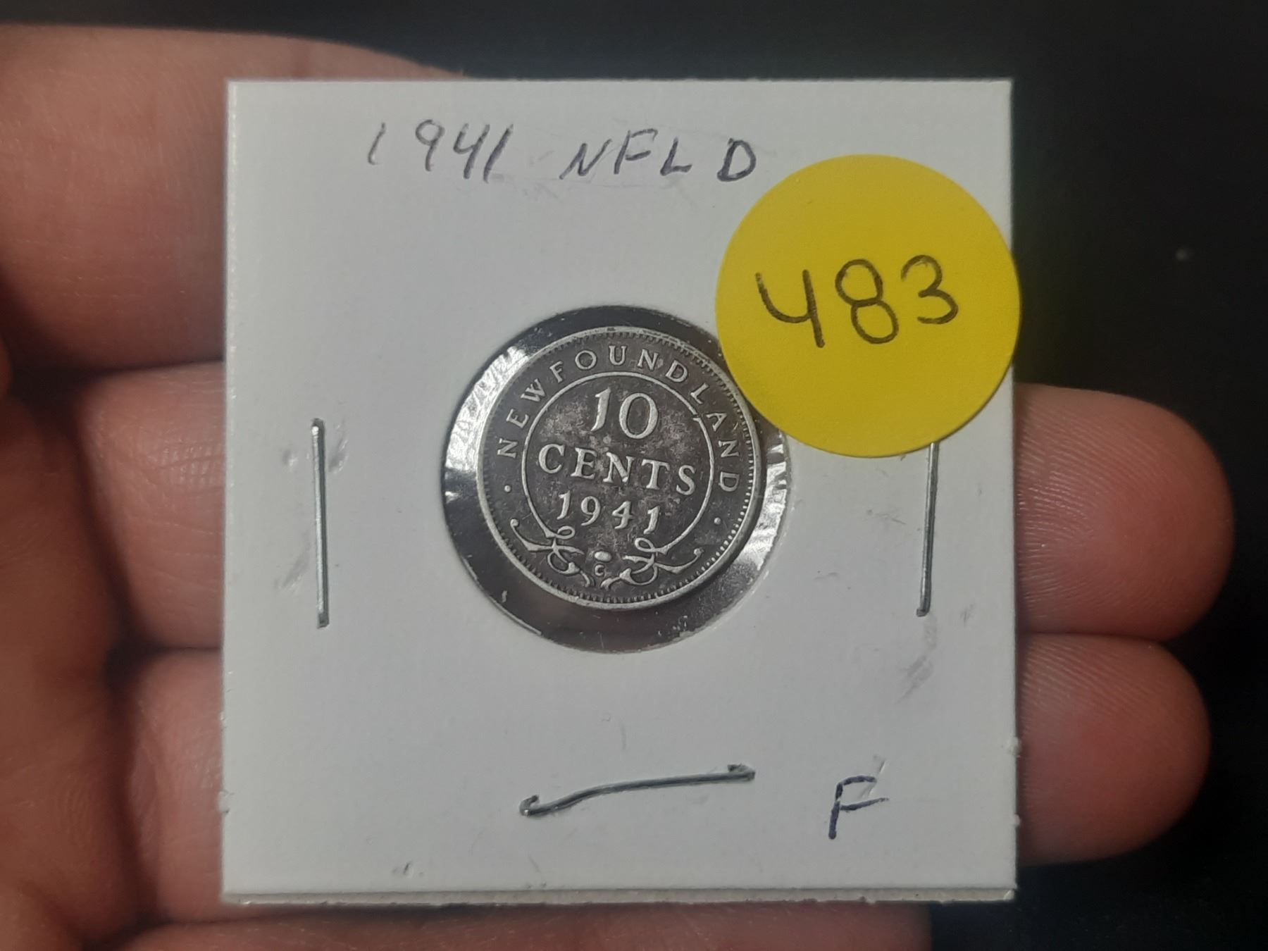 Lot 483 1941 New Foundland Silver 10 Cents.
