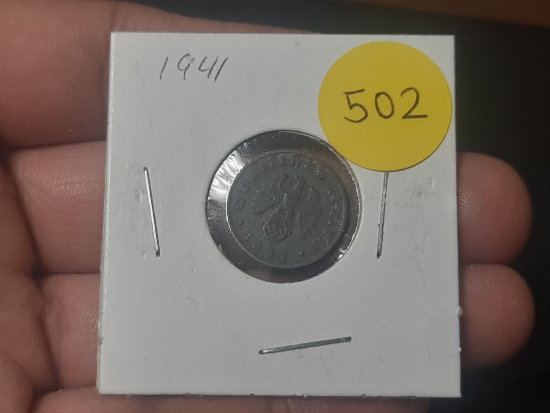 Lot 502 1941 German Third Reich One Reichspfennig Coin.