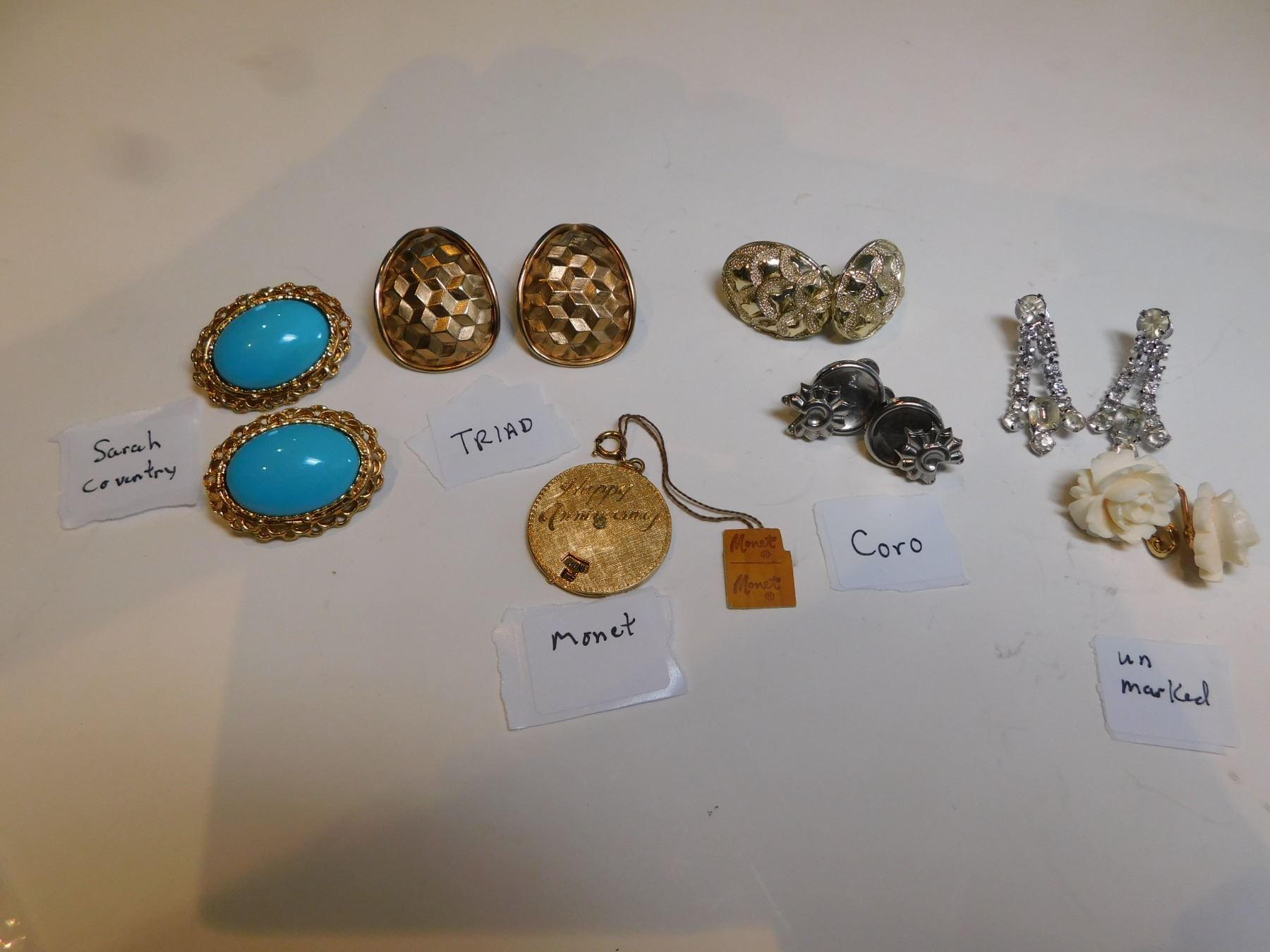 MOSTLY MARKED COSTUME JEWELLRY EARINGS AND MONET PENDANT