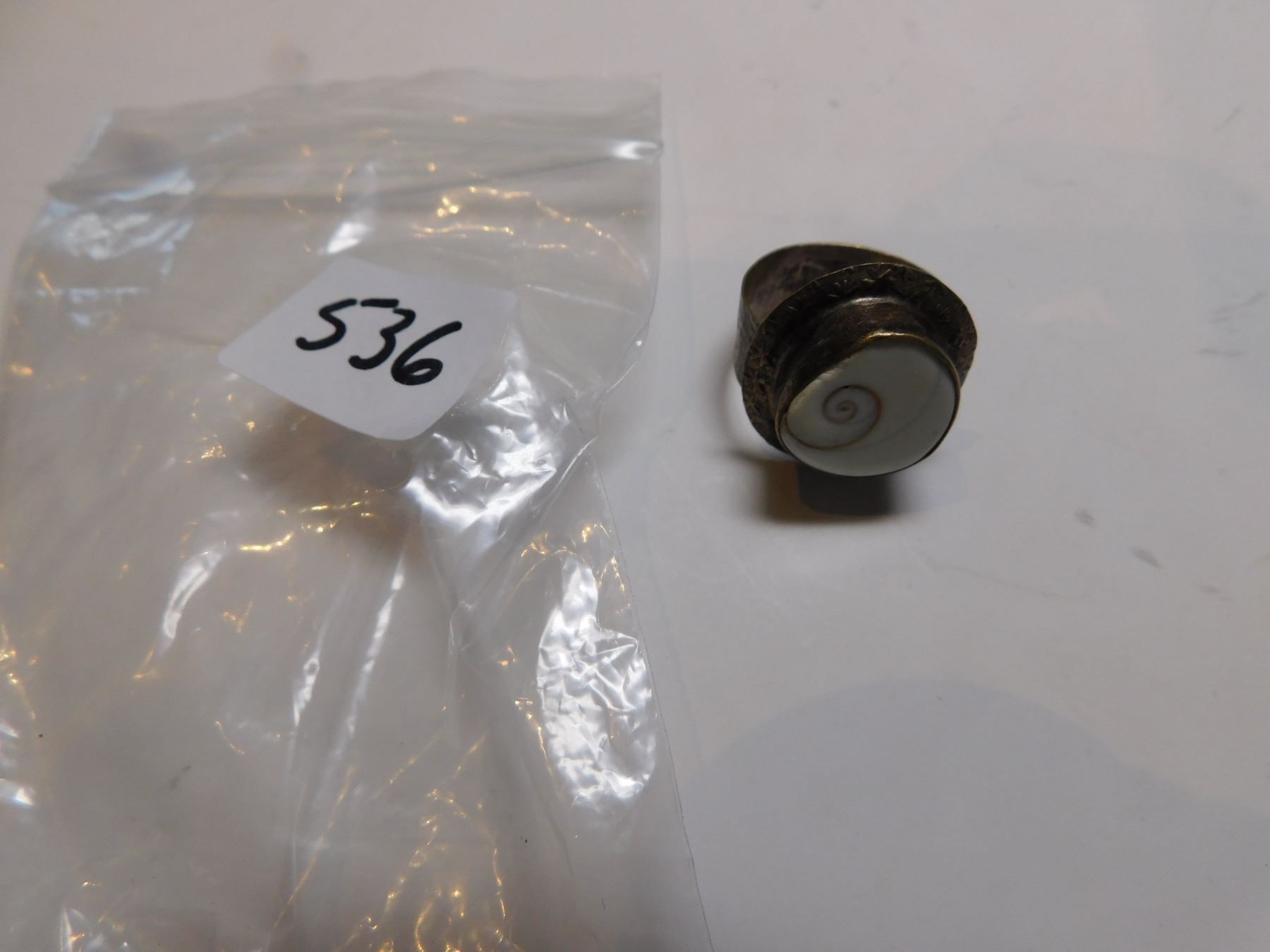 Lot 536 SHIVA EYE OPERCULUM SHELL RING IN STERLING