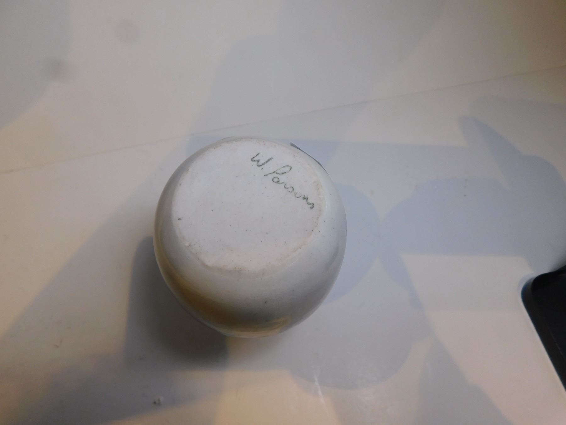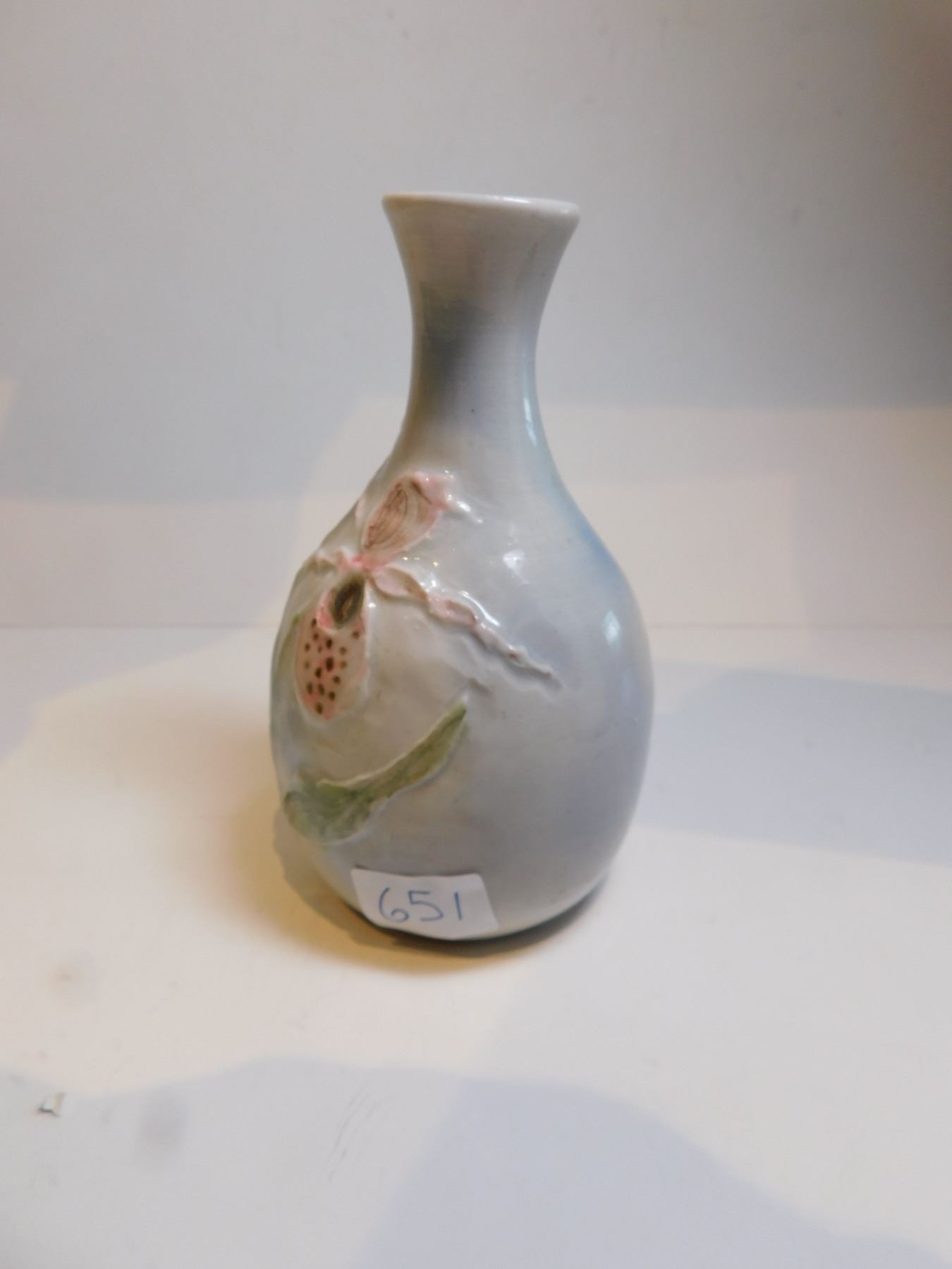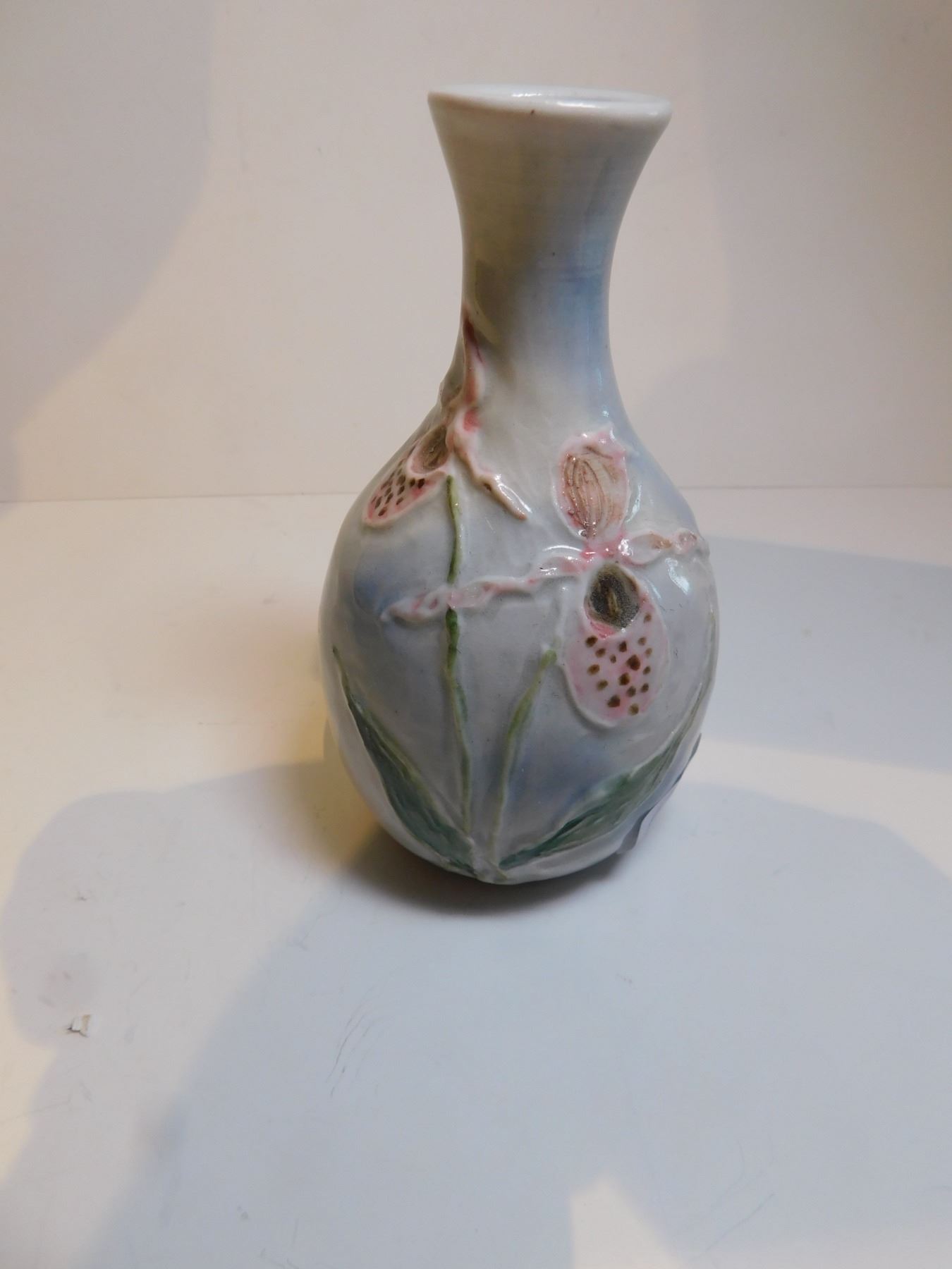 Lot 651 W PARSONS SIGNED VASE, ORCHIDS ABOUT 5” TALL