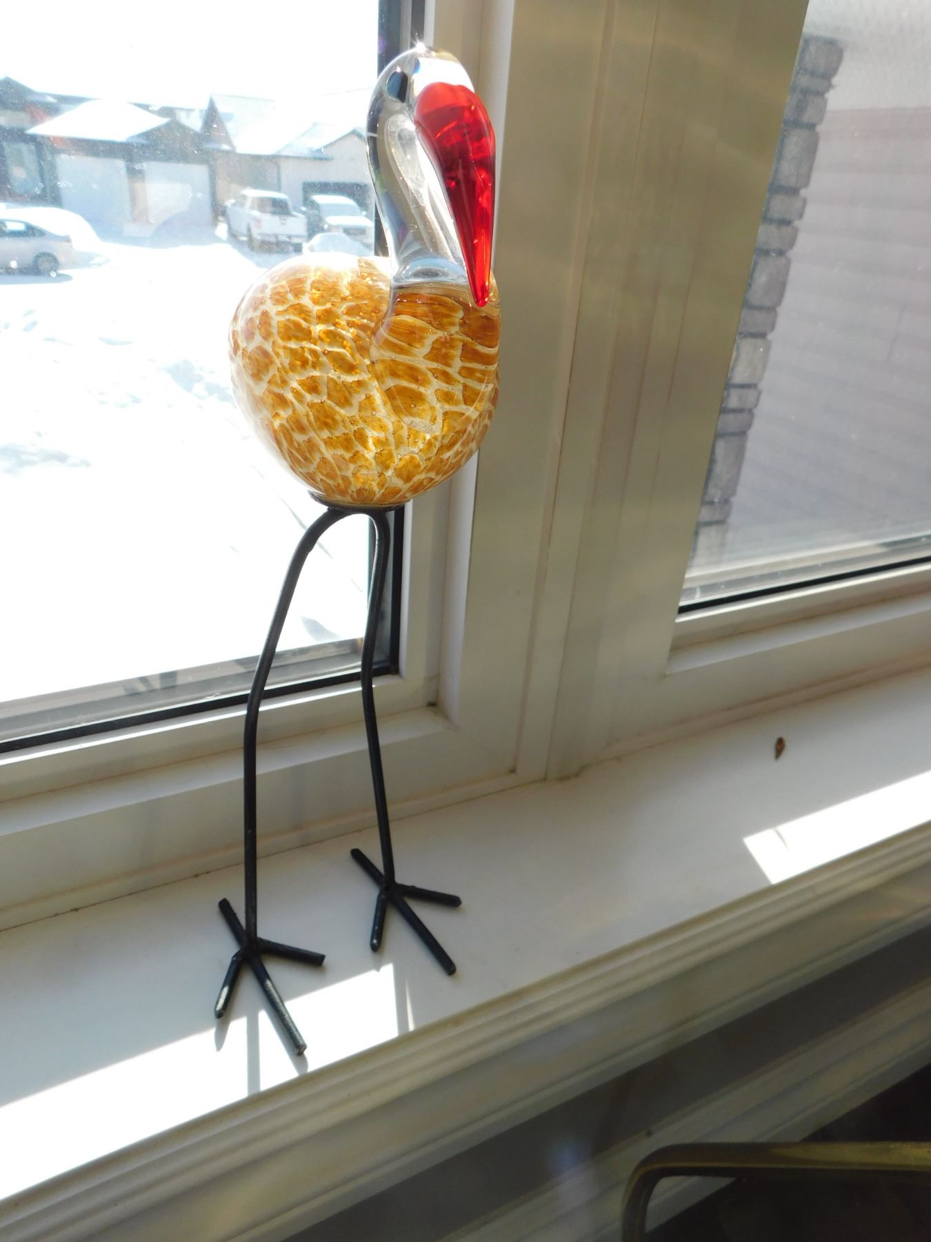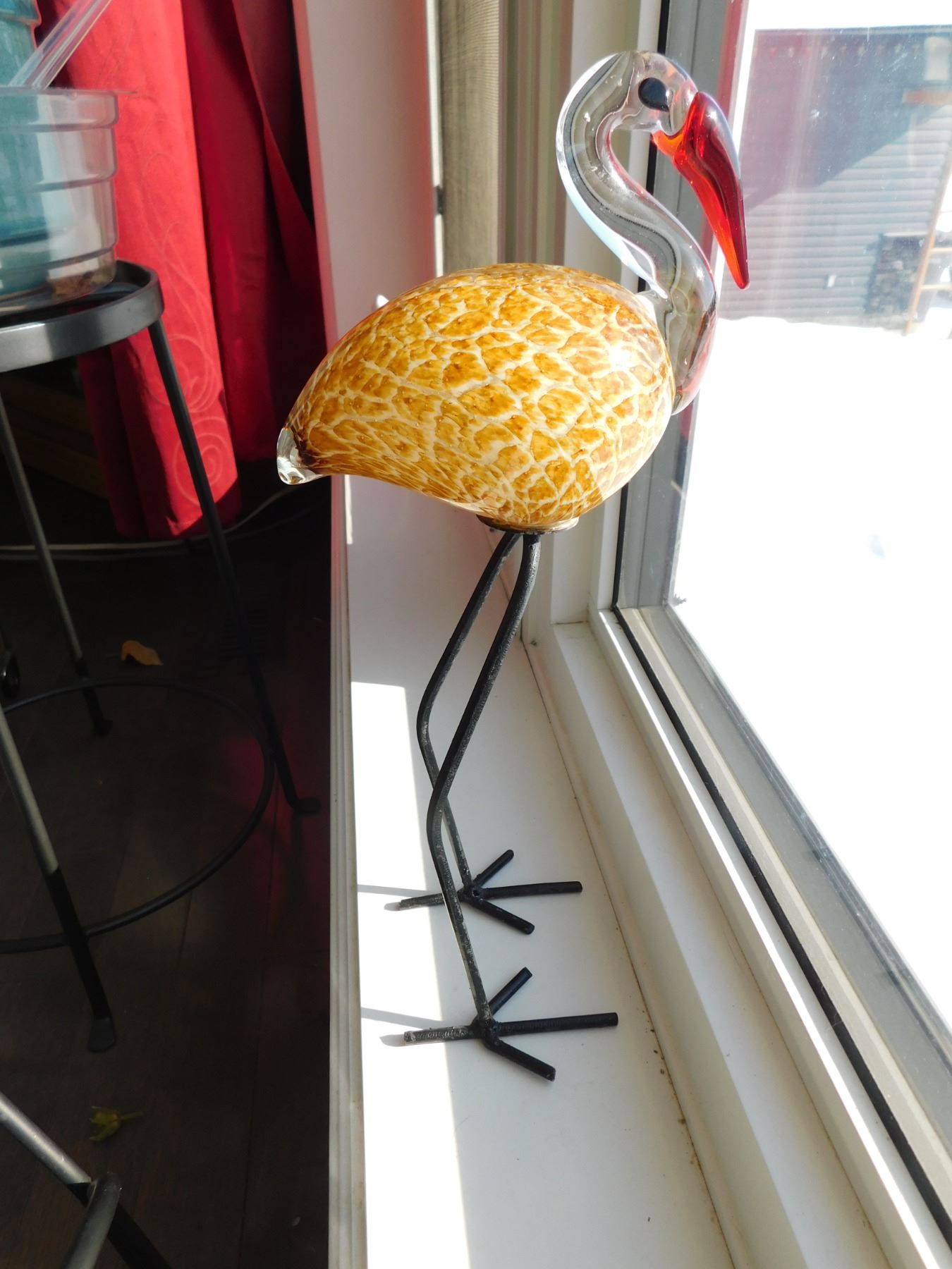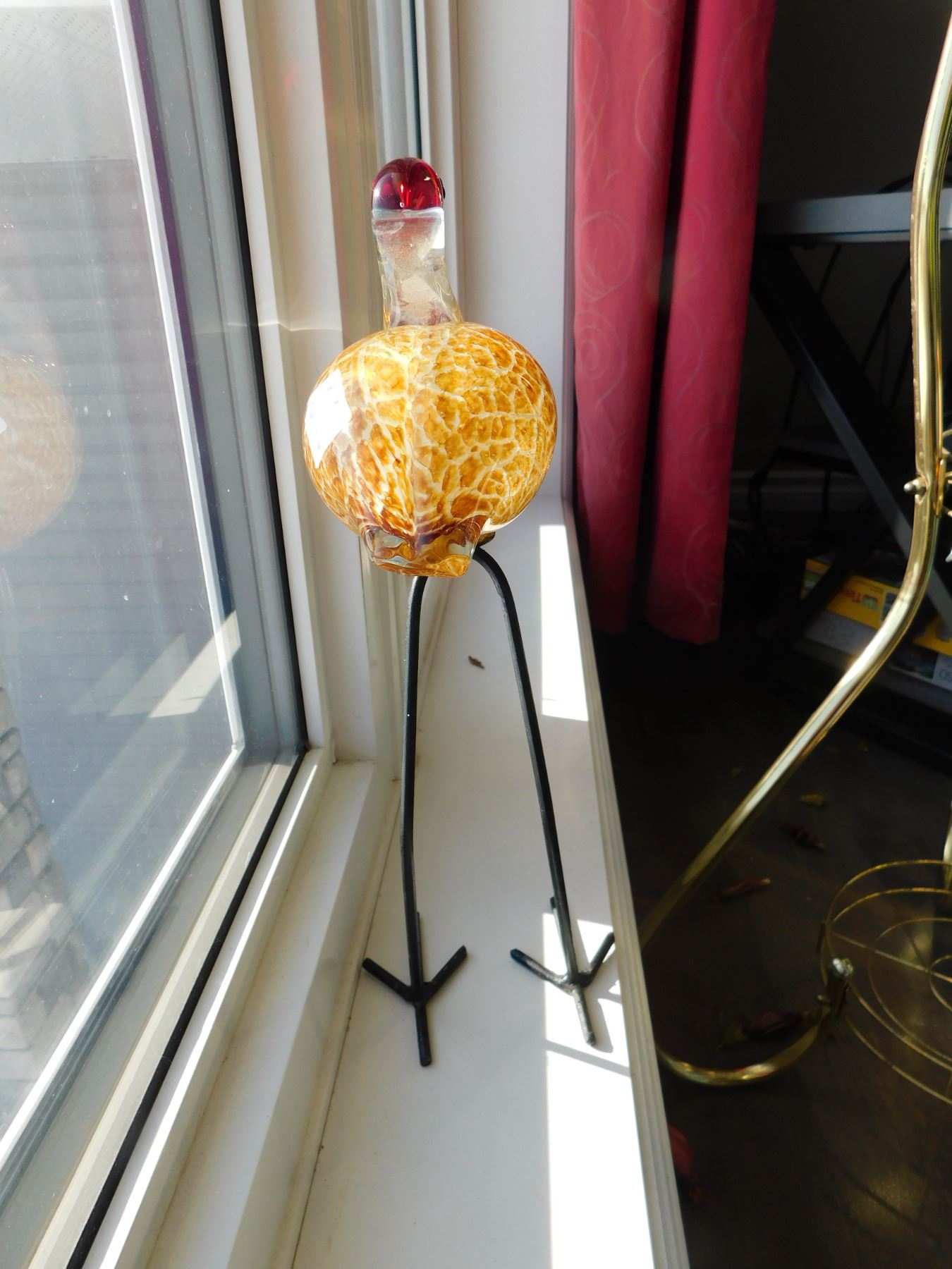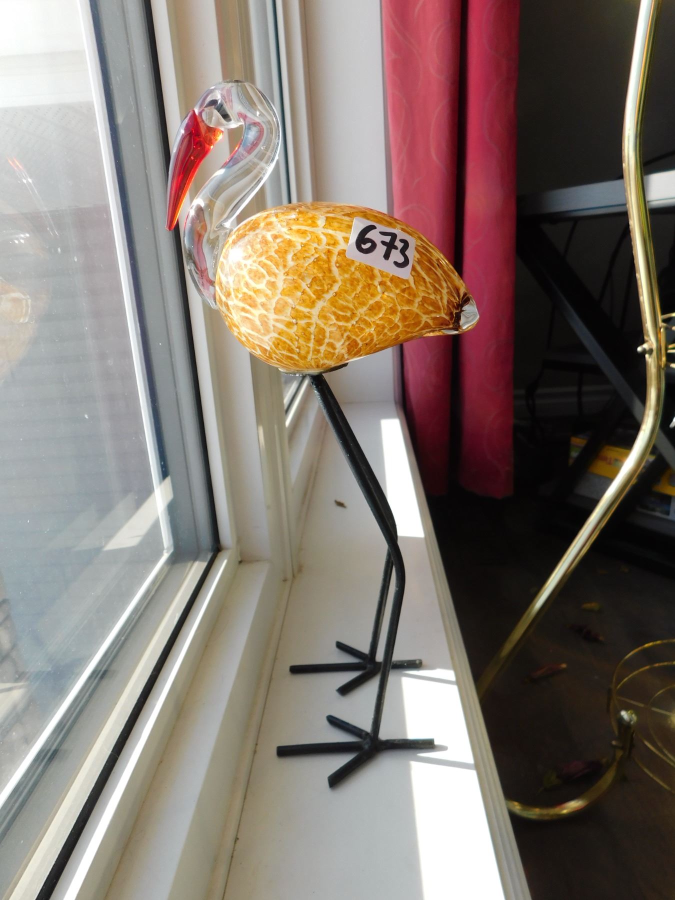 Lot 673 ART GLASS STORK ON METAL LEGS