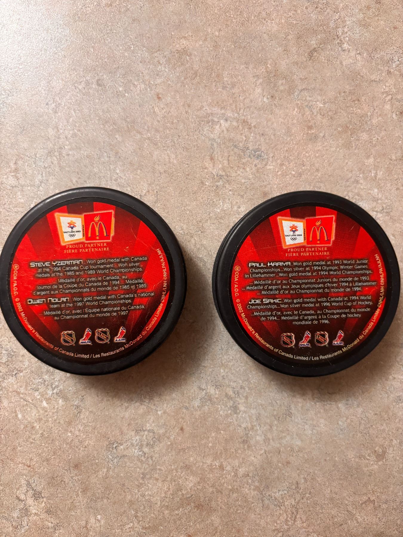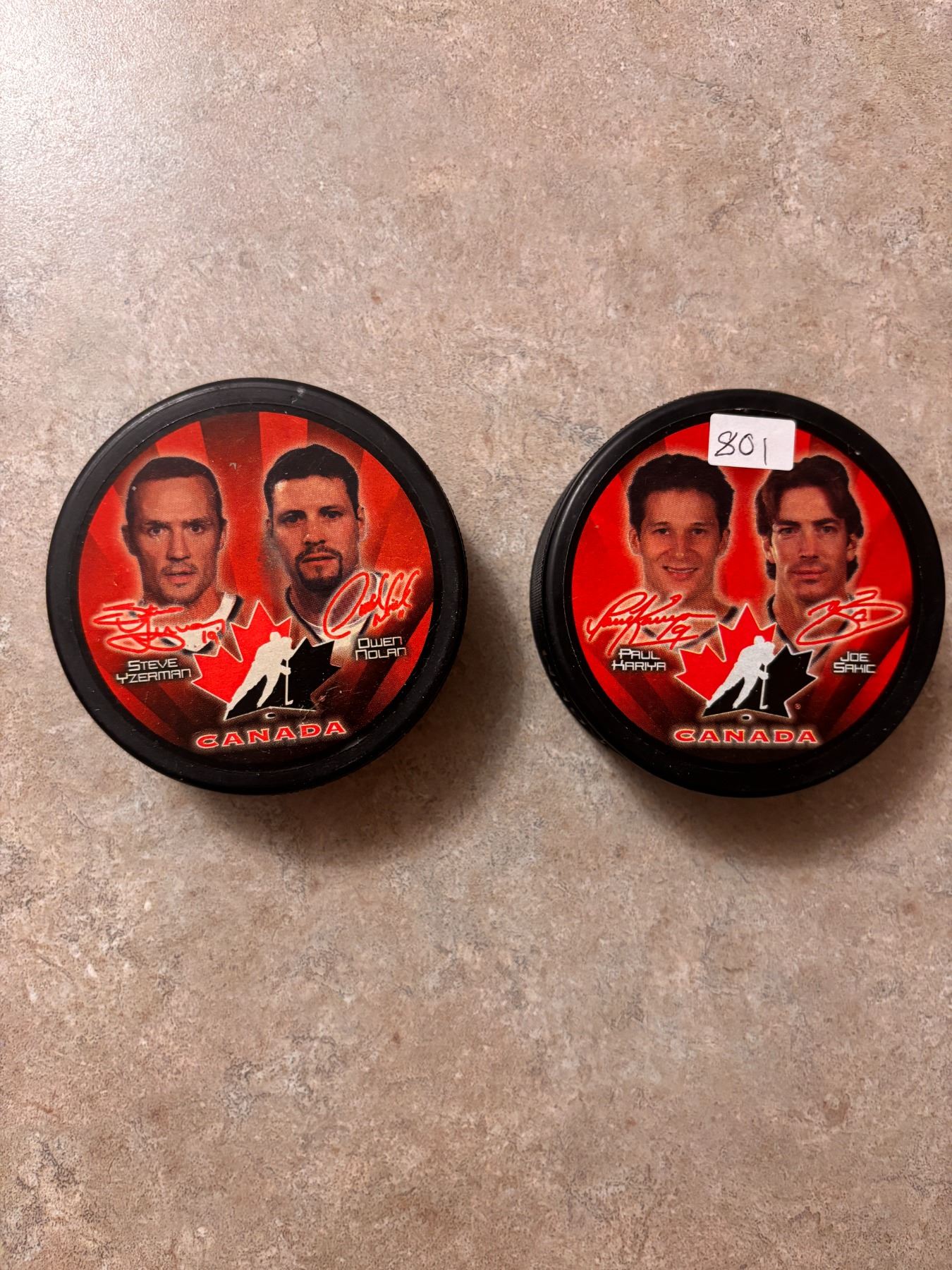 Lot 801 Team Canada Hockey Pucks (2)