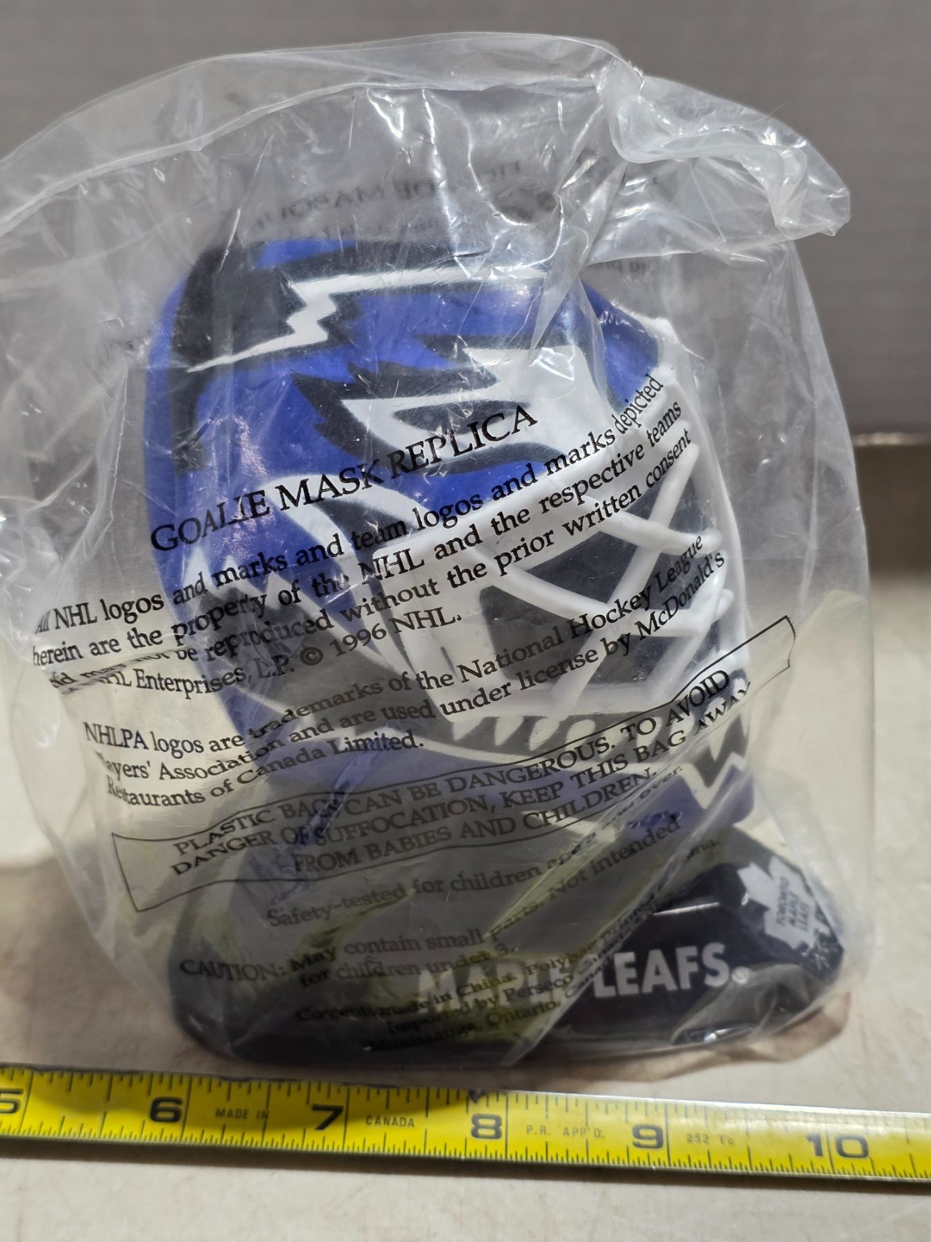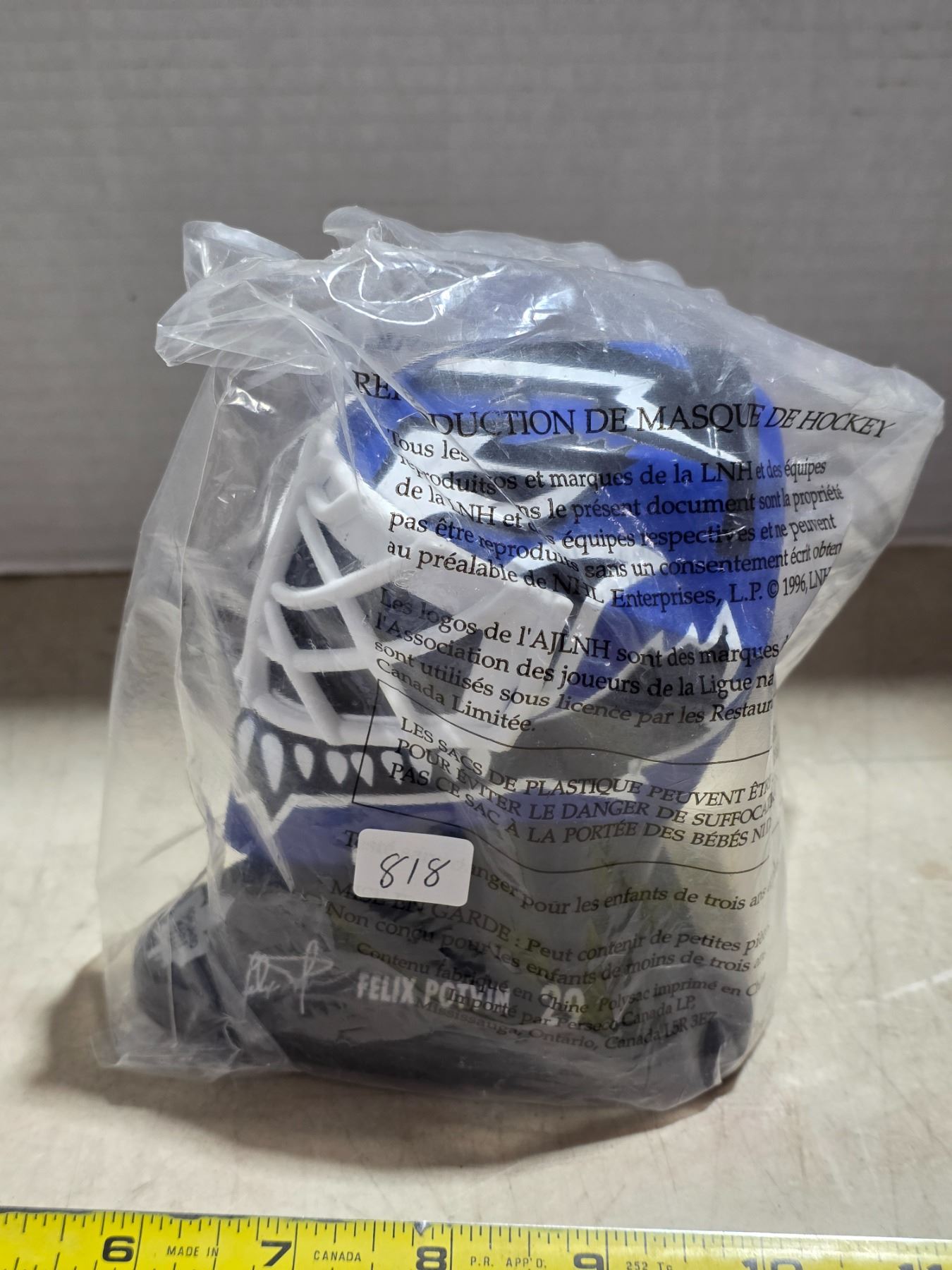 Lot 818 Mcdonalds hockey mask- sealed- Felix potvin