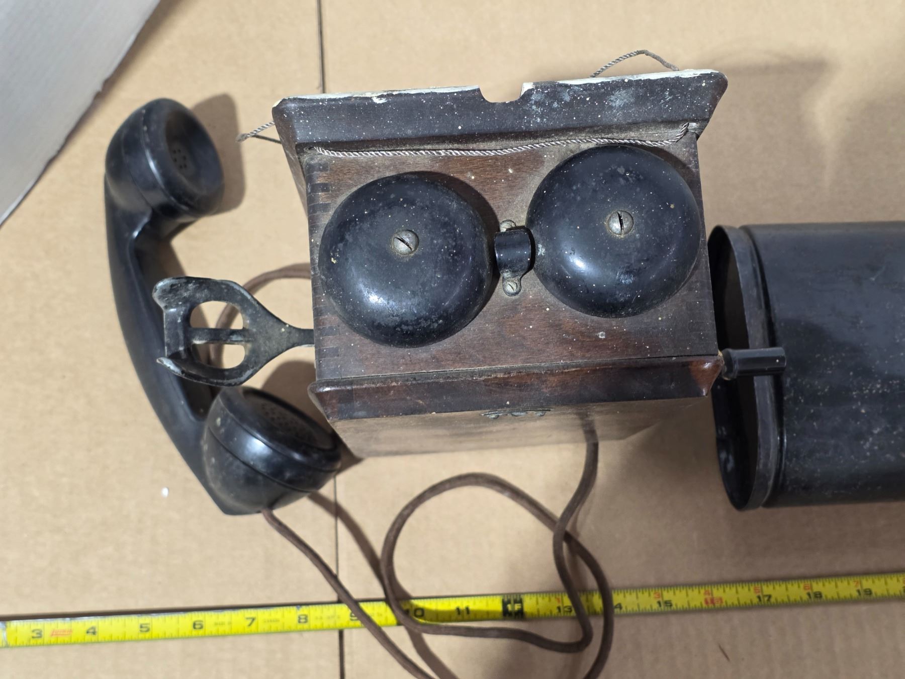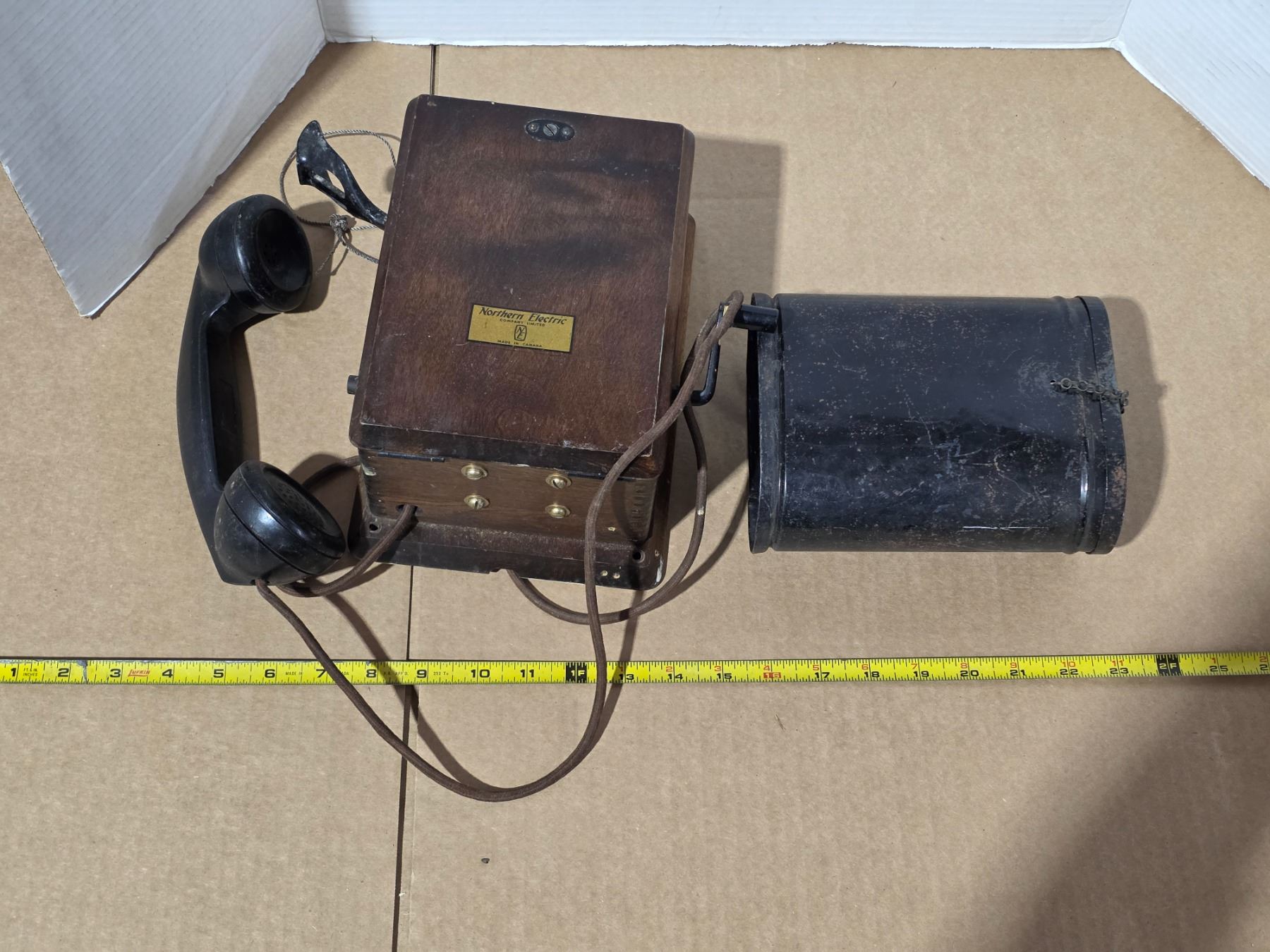 Lot 919 Antique northern electric wall phone and side mount battery box